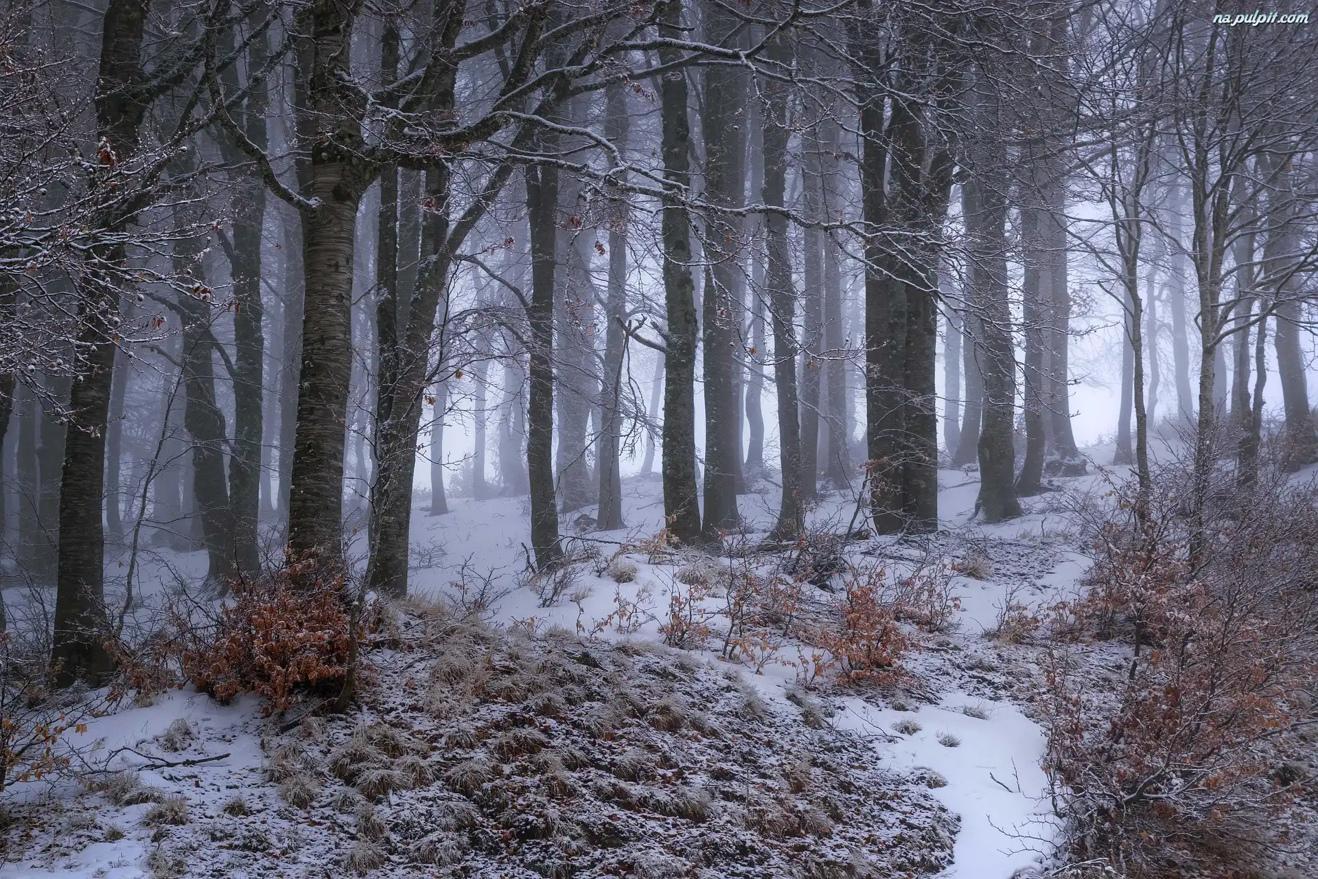 Mgła, Drzewa, Las, Zima, Śnieg Na Pulpit