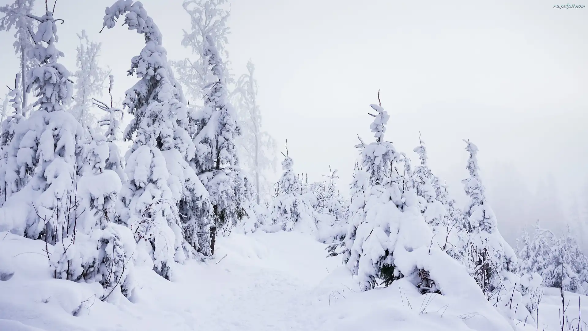 Mgła, Drzewa, Zaśnieżone, Zima, Śnieg Na Pulpit