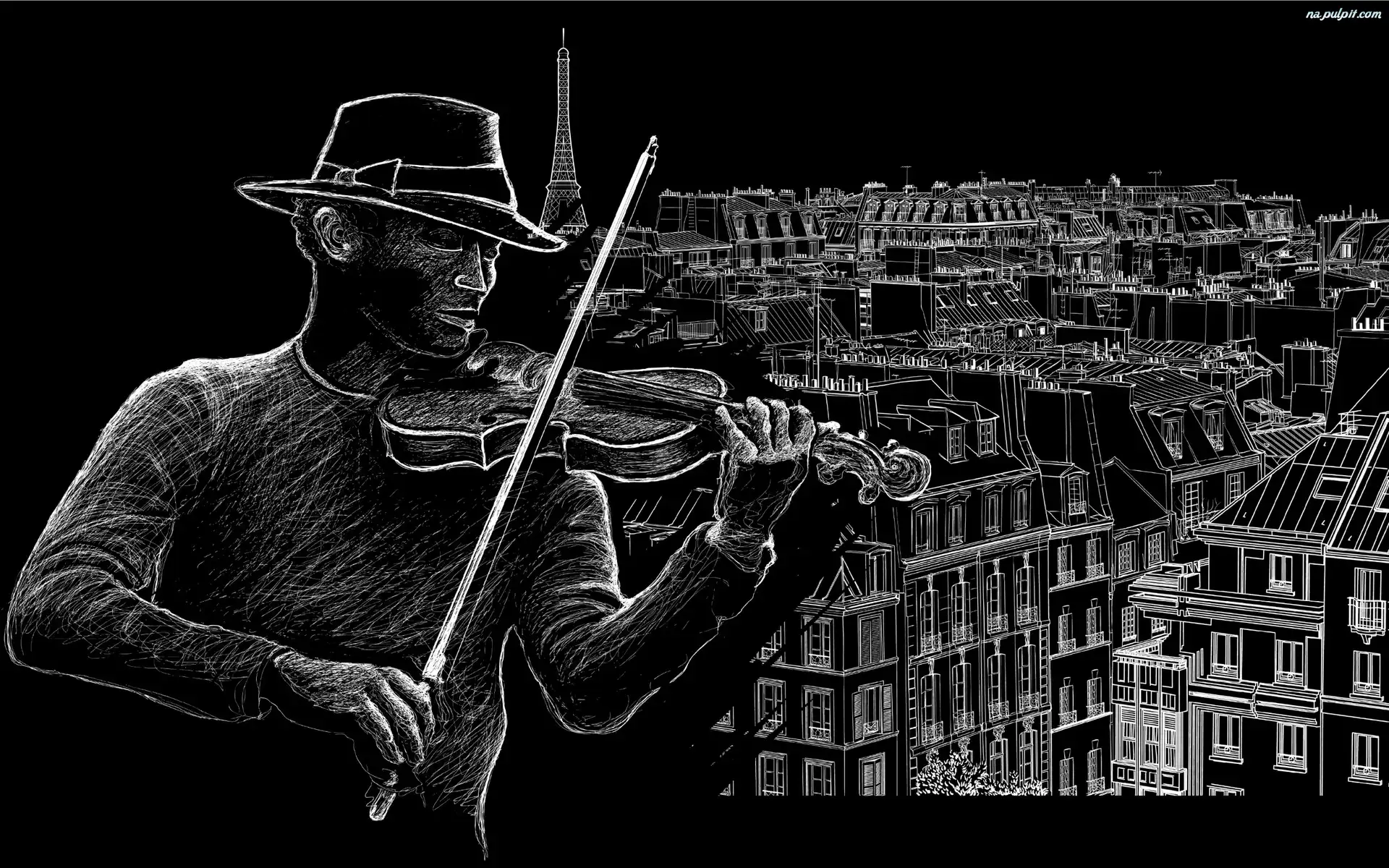 Miasta, Skrzypce, Mężczyzna, Grafika, Panorama