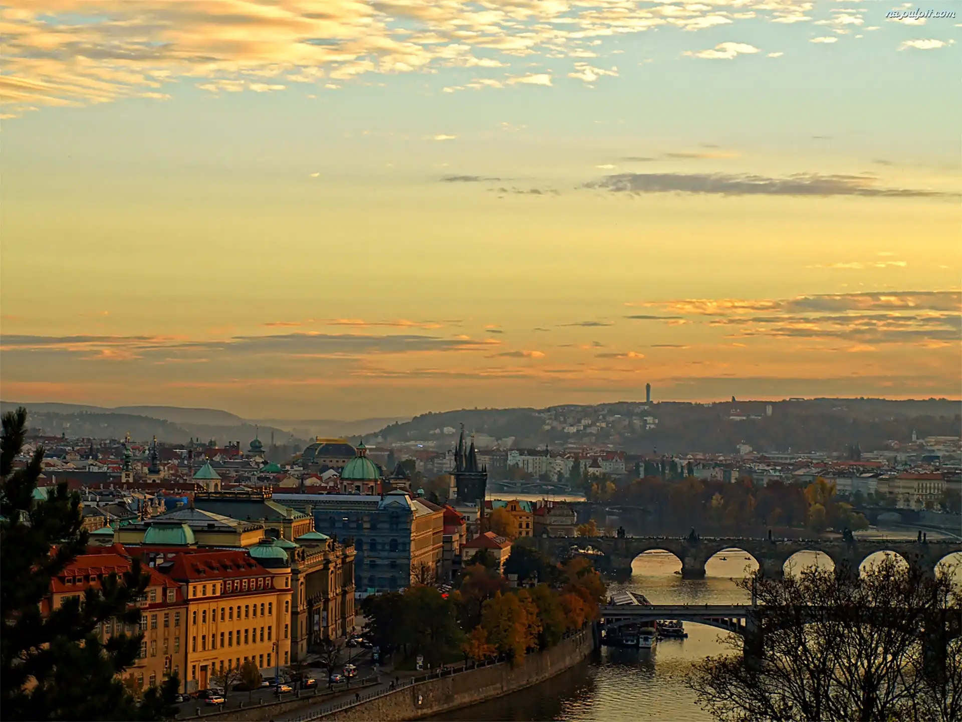 Miasta, Niebo, Most, Rzeka, Panorama Na Pulpit