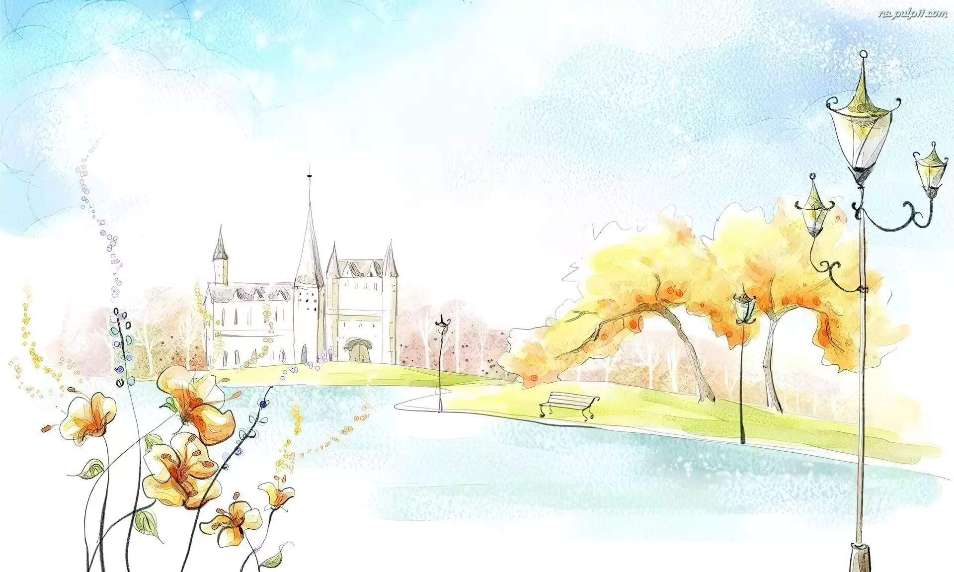 Rzeka, Miasteczko, Budynki Na Pulpit