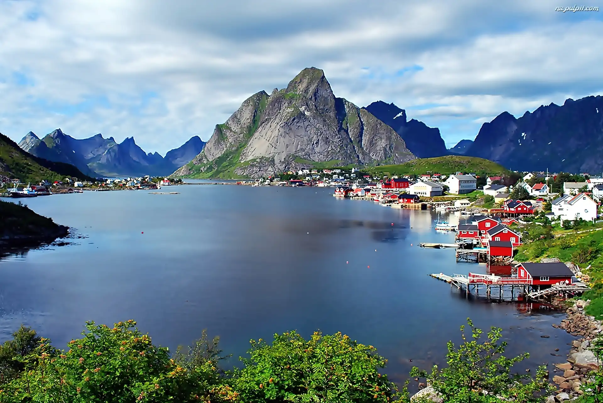 Miasteczko, Góry, Gudvangen, Fiord, Chmury Na Pulpit