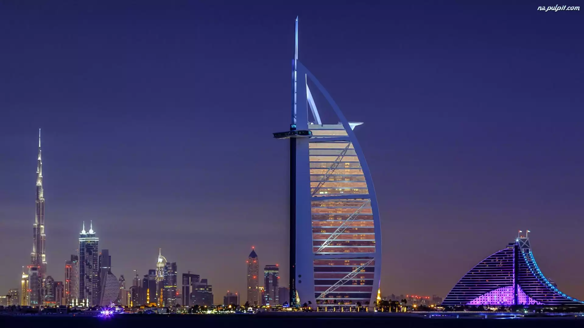 Miasto nocą, Hotel, Drapacze chmur, Oświetlone Na Pulpit
