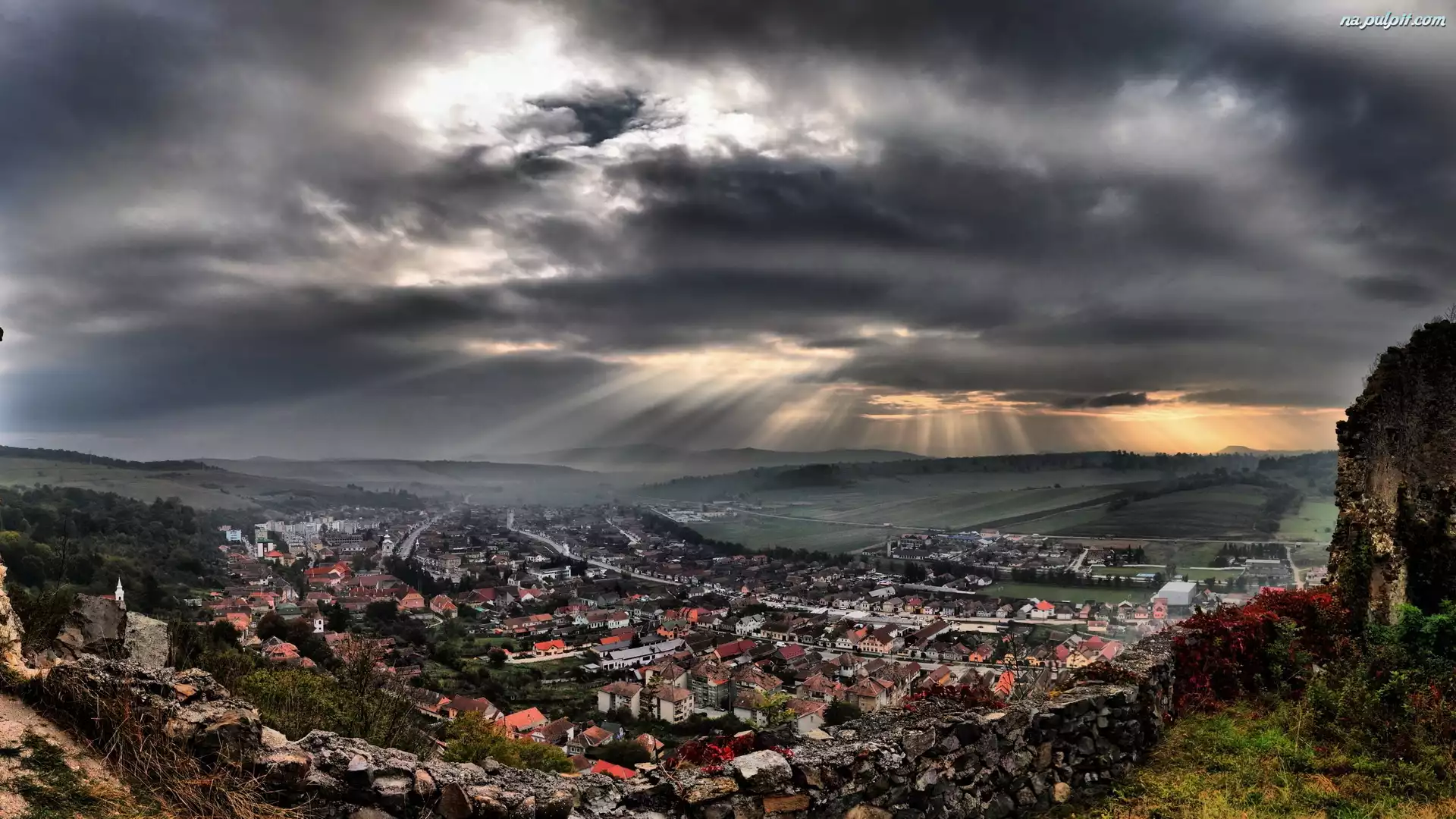 Światło, Chmury, Miasto, Przebijające Na Pulpit