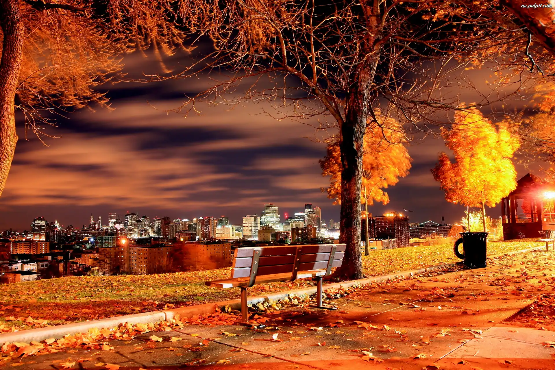 Jesień, Miasto, Ławka Na Pulpit