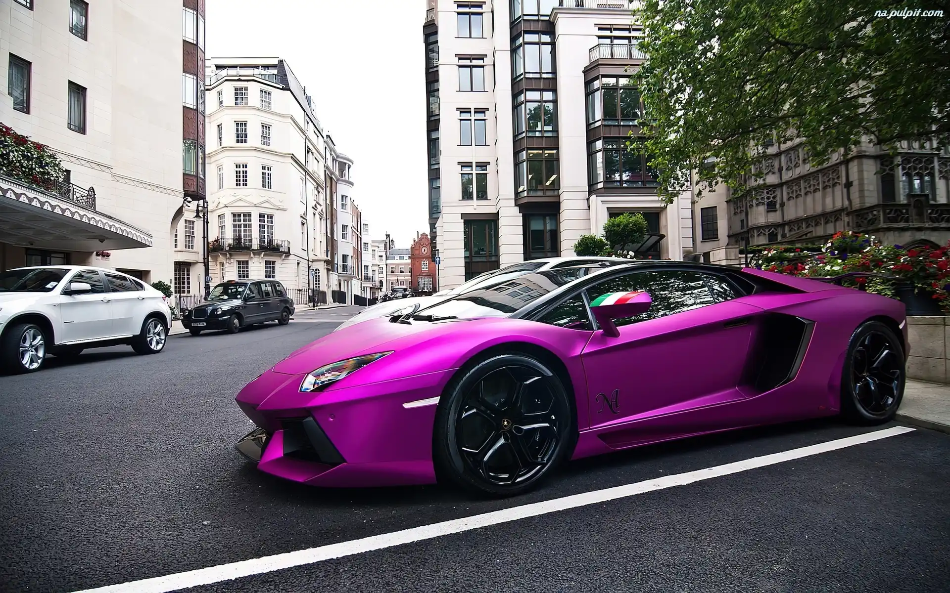 Miasto, Purpurowe, Lamborghini Aventador Na Pulpit