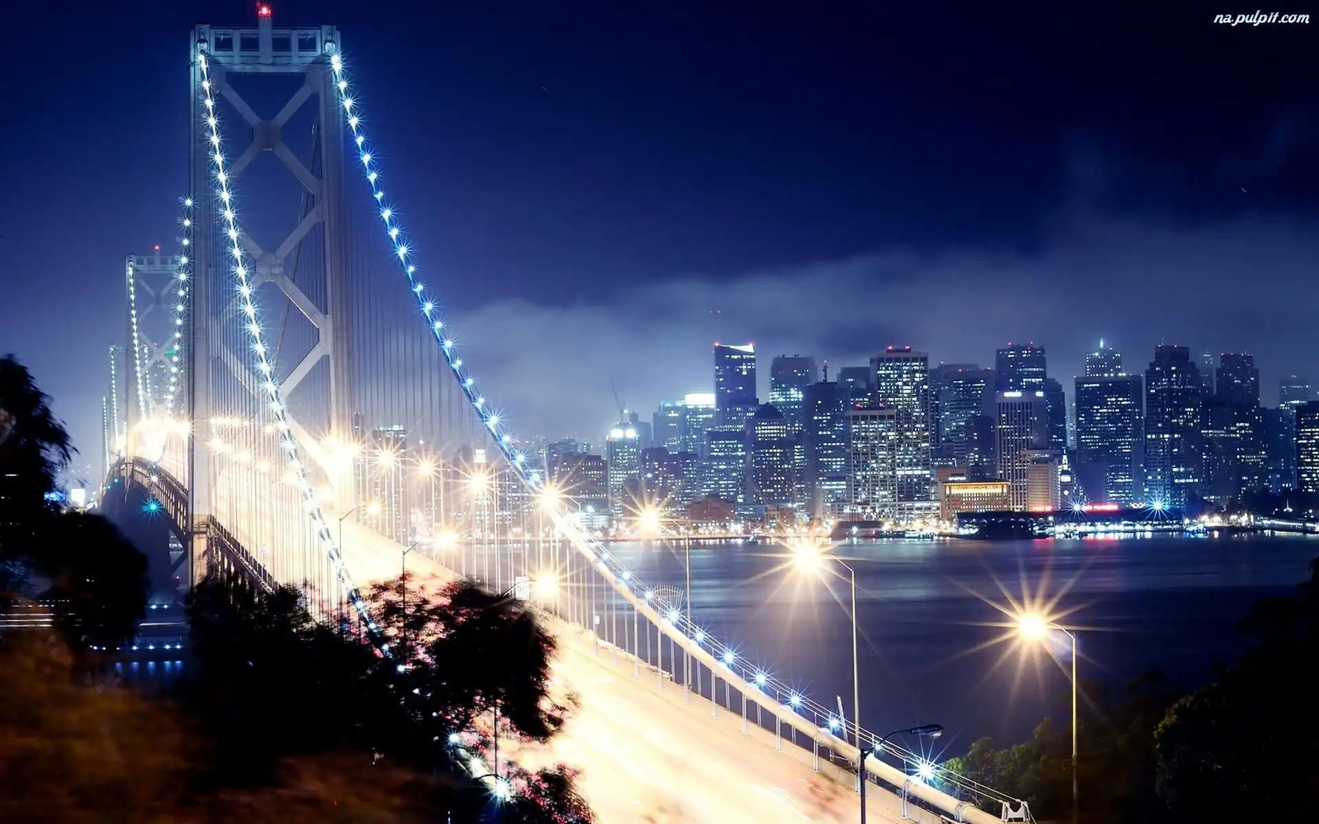 Miasto, Drapacze, Chmur, Noc, Most, Światła Na Pulpit