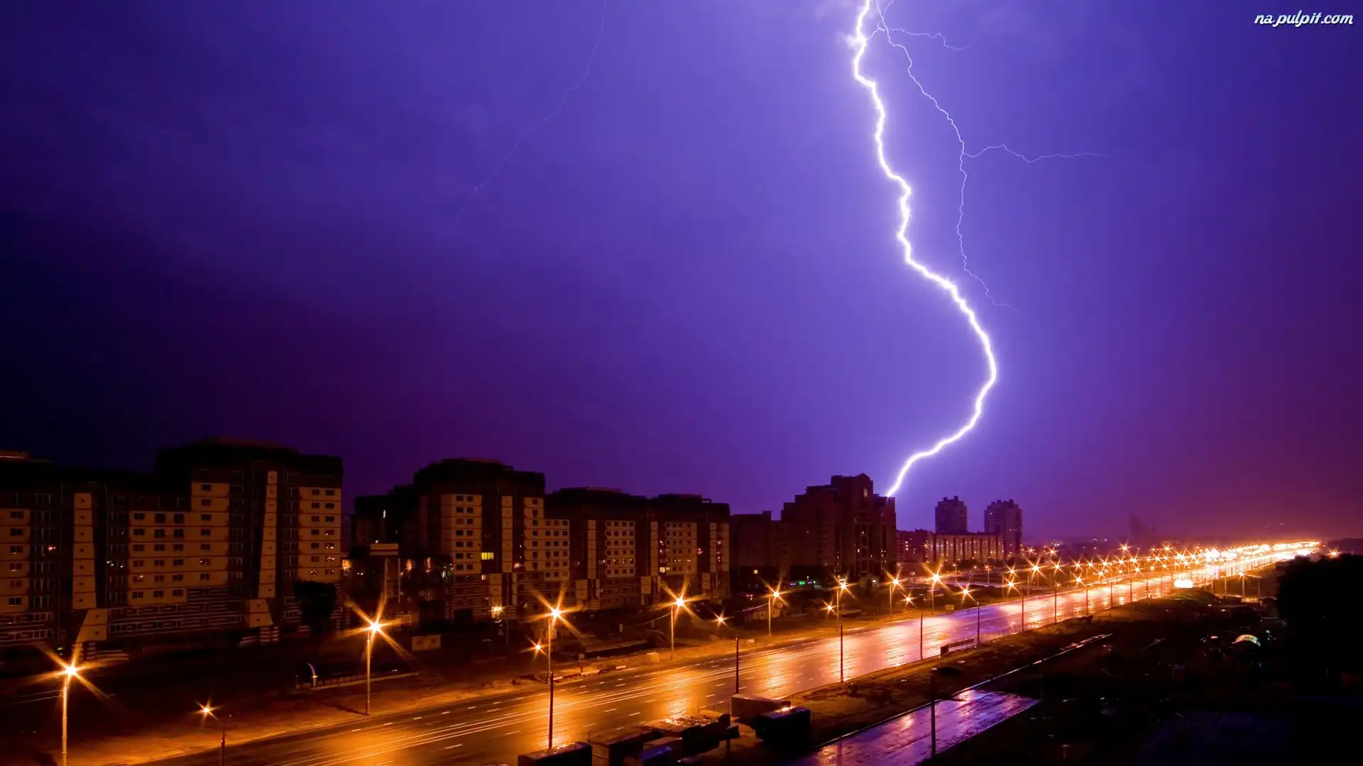 Miasto, Latarnie, Domy, Piorun, Noc, Ulica Na Pulpit