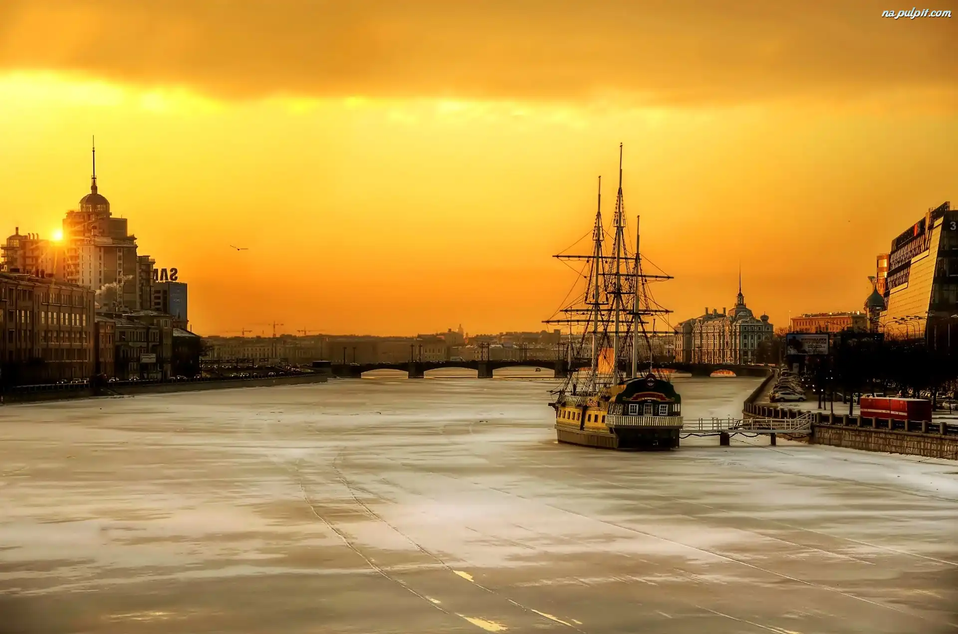Miasto, Zachód Słońca, Petersburg, Statek
