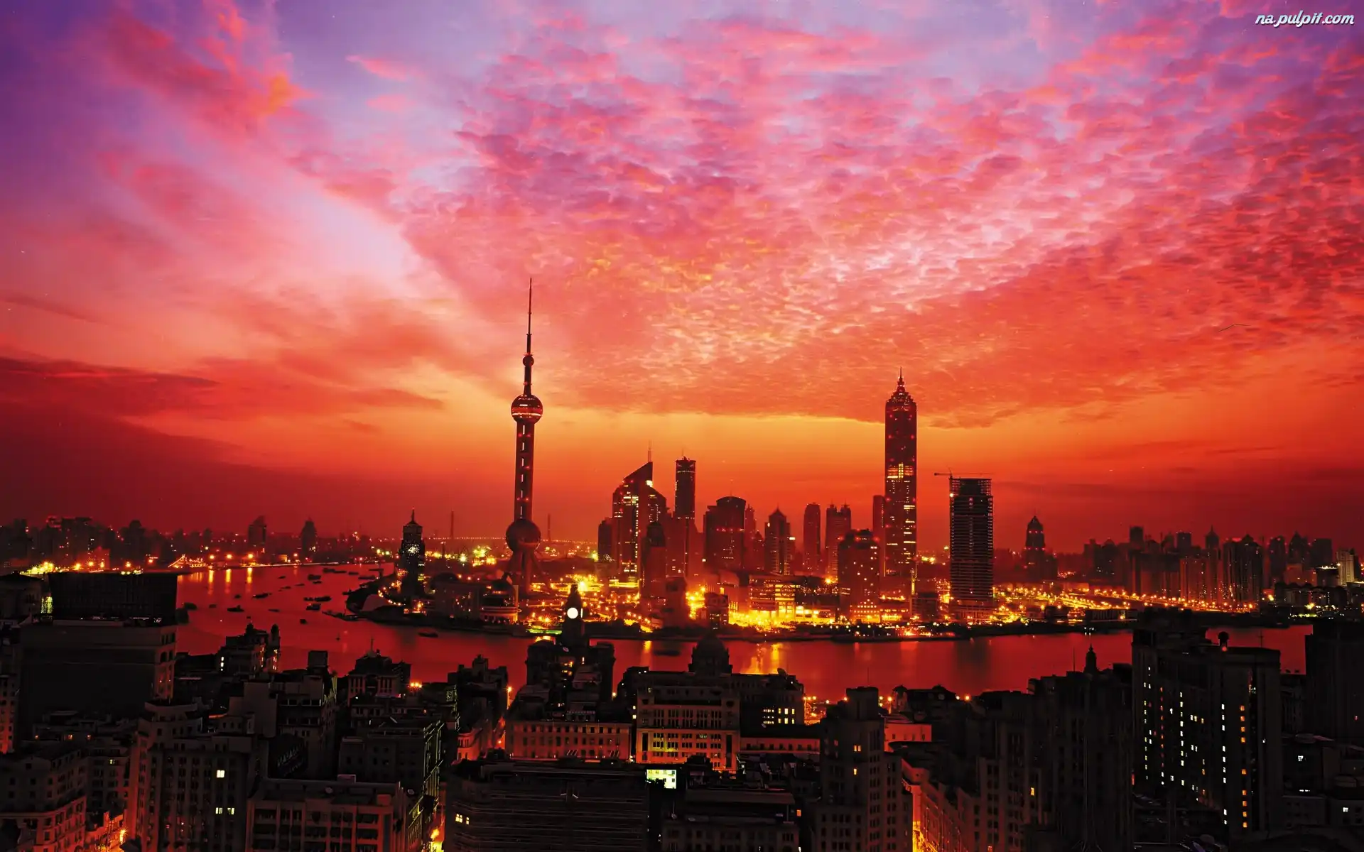 Miasto, Zachód, Chmury, Piękne, Słońca Na Pulpit