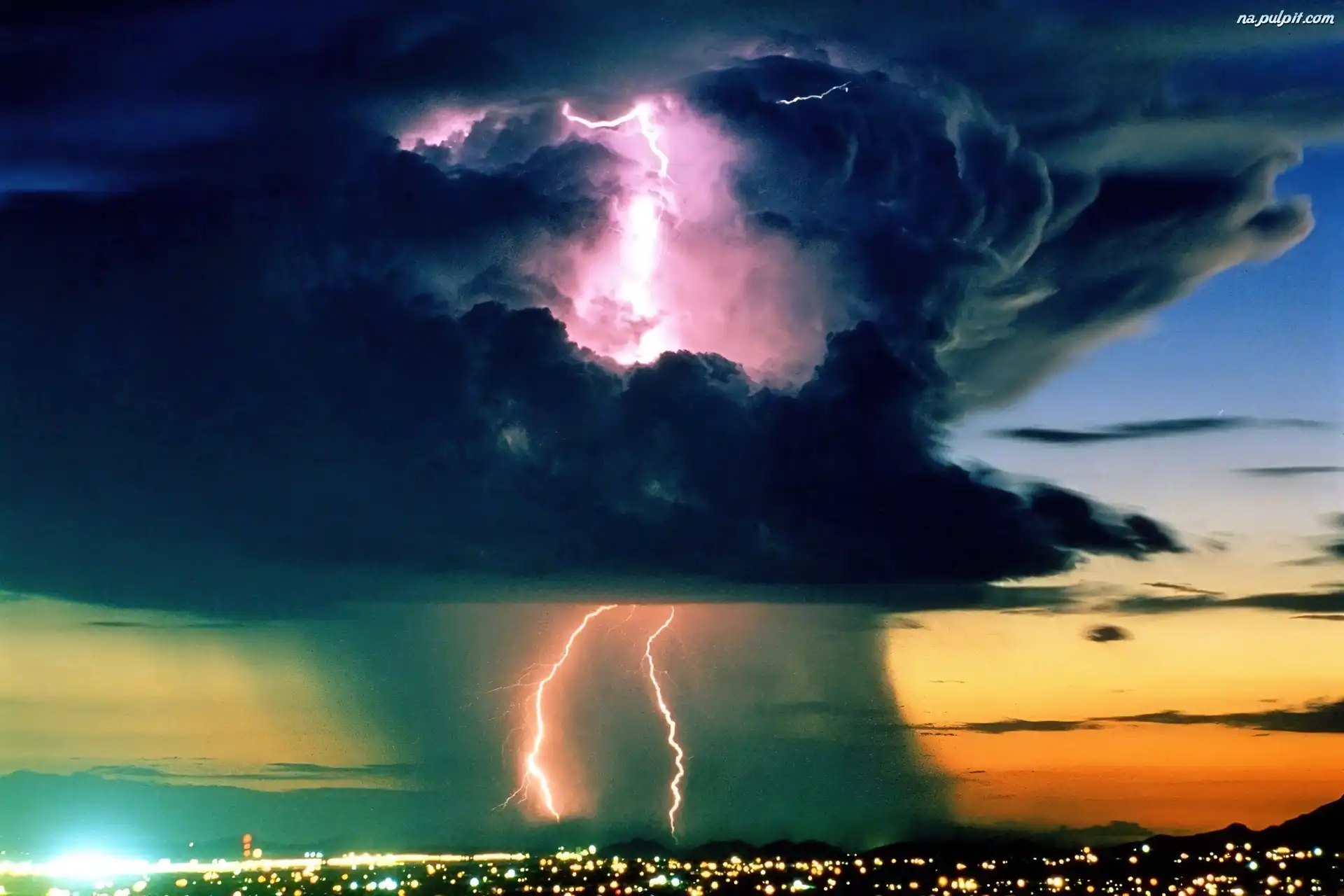 Miasto, Czarne, Pioruny, Niebo Na Pulpit