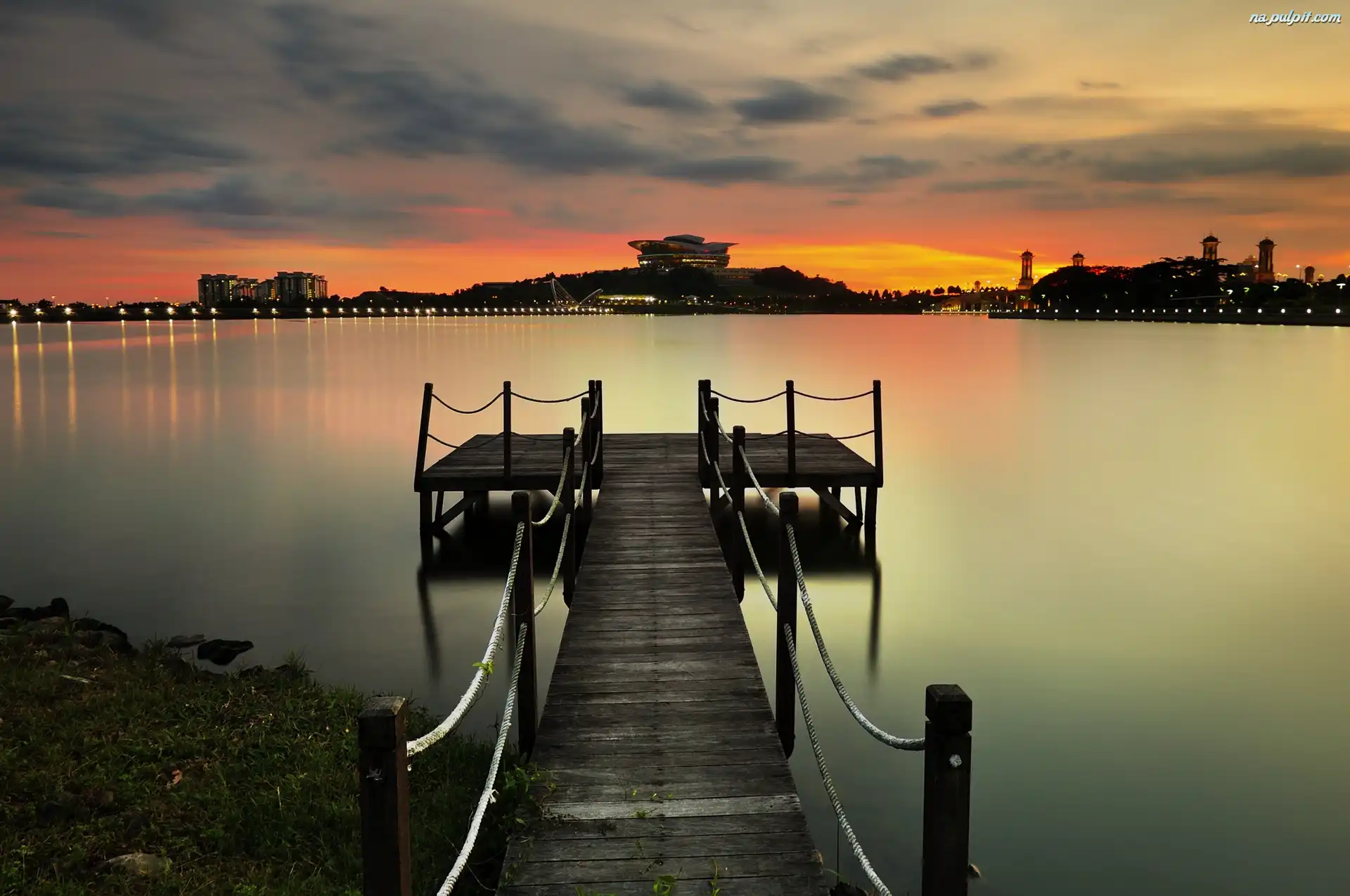 Miasto, Zachód, Pomost, Rzeka, Słońca Na Pulpit