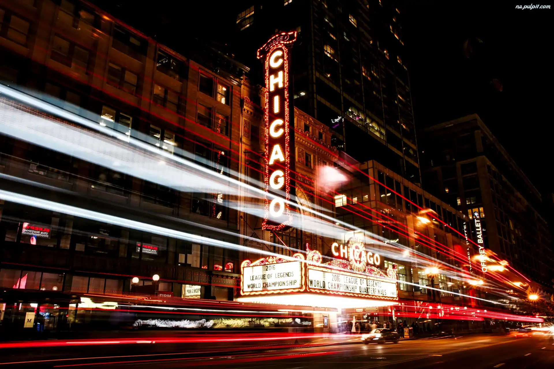 Miasto Nocą, Chicago, Stany Zjednoczone Na Pulpit