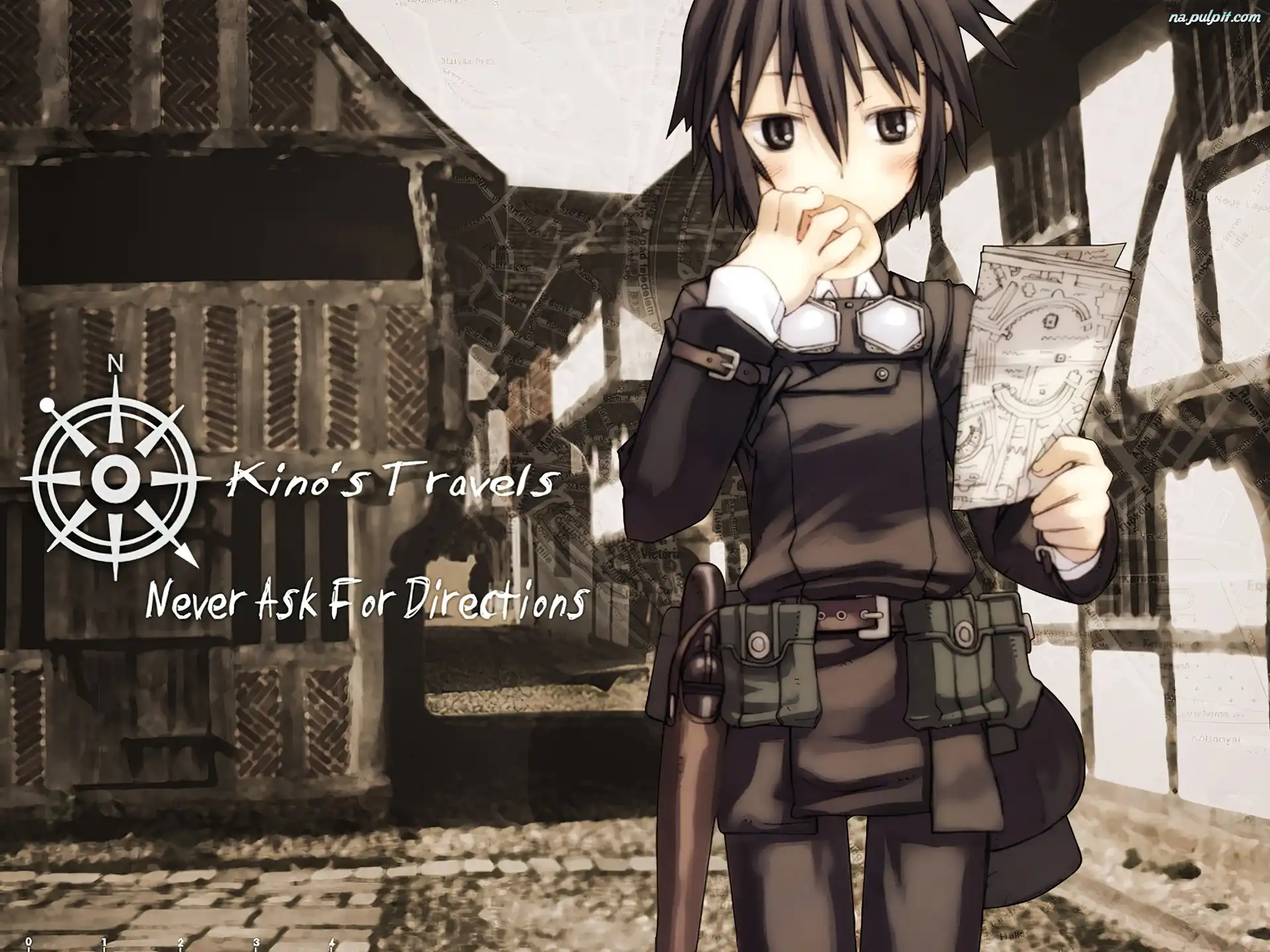 miasto, postać, Kino No Tabi, mapa Na Pulpit