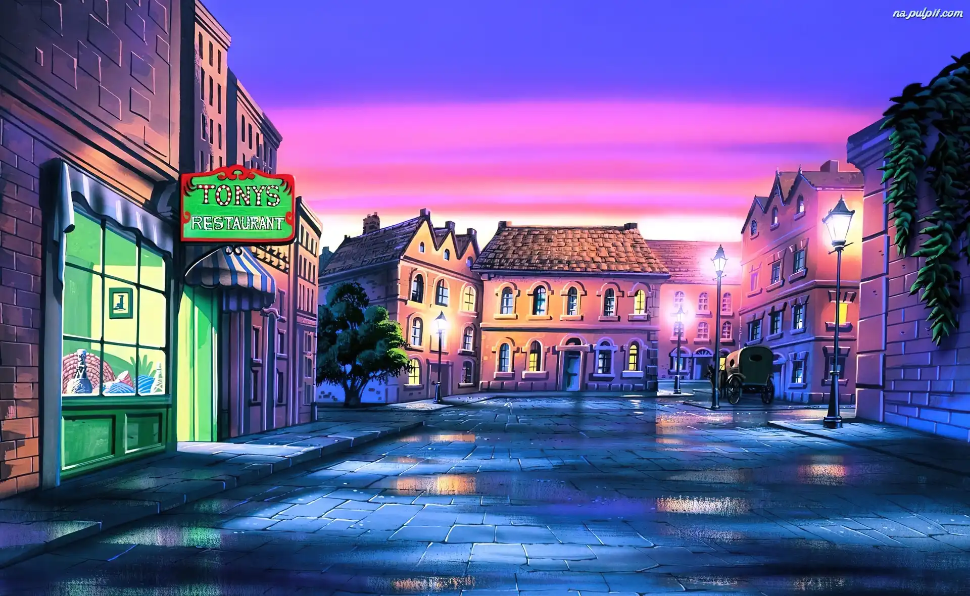 Ulica, Domy, Latarnie, Miasto Na Pulpit