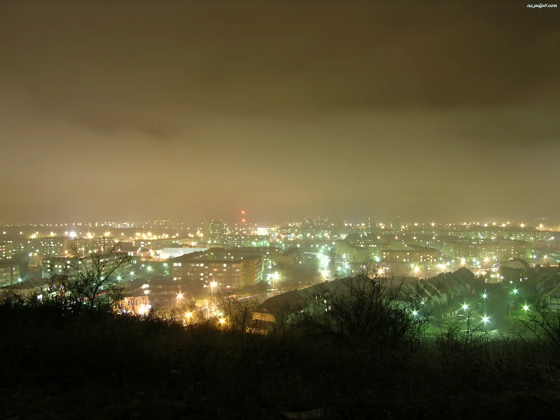 Światła, Miasto, Nocą Na Pulpit