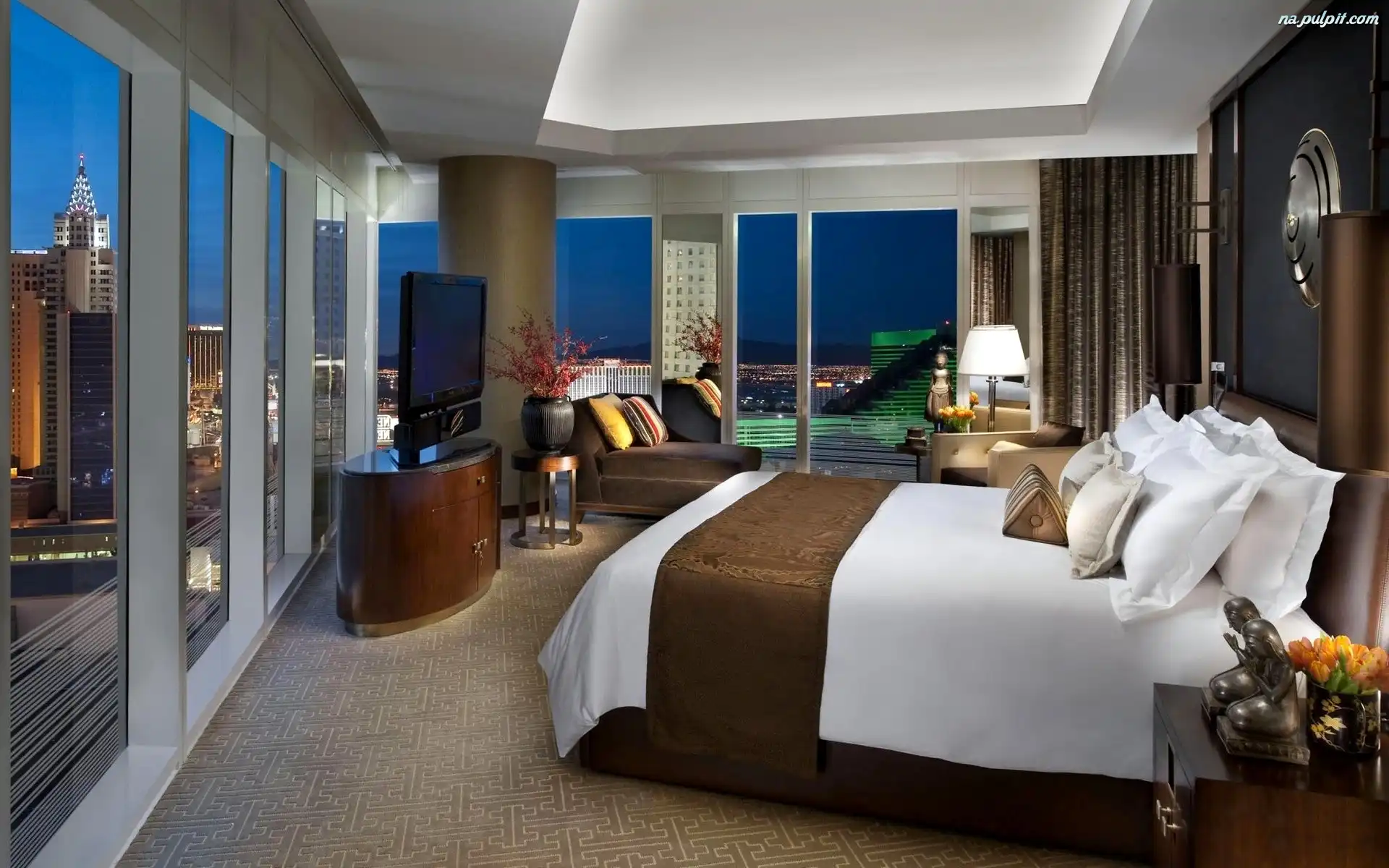 Miasto, Sypialnia, Wnętrze, Widokowe okna Na Pulpit