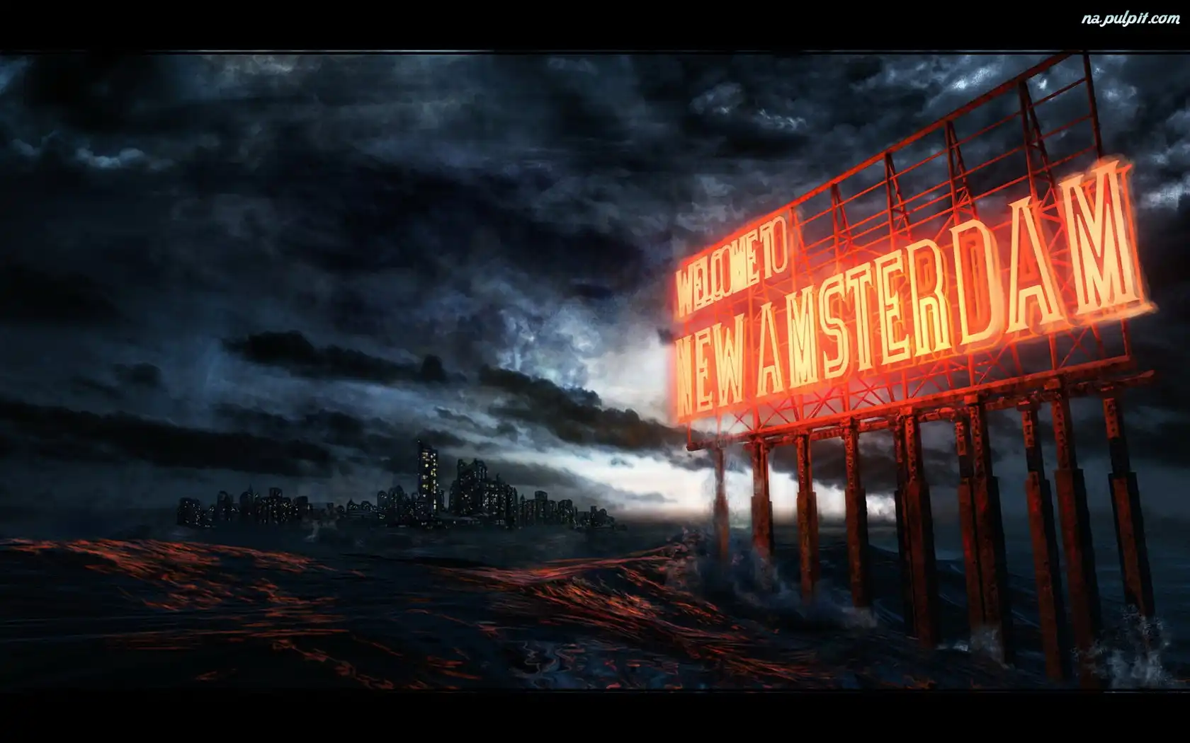 Miasto, Morze, Wzburzone, Ponure