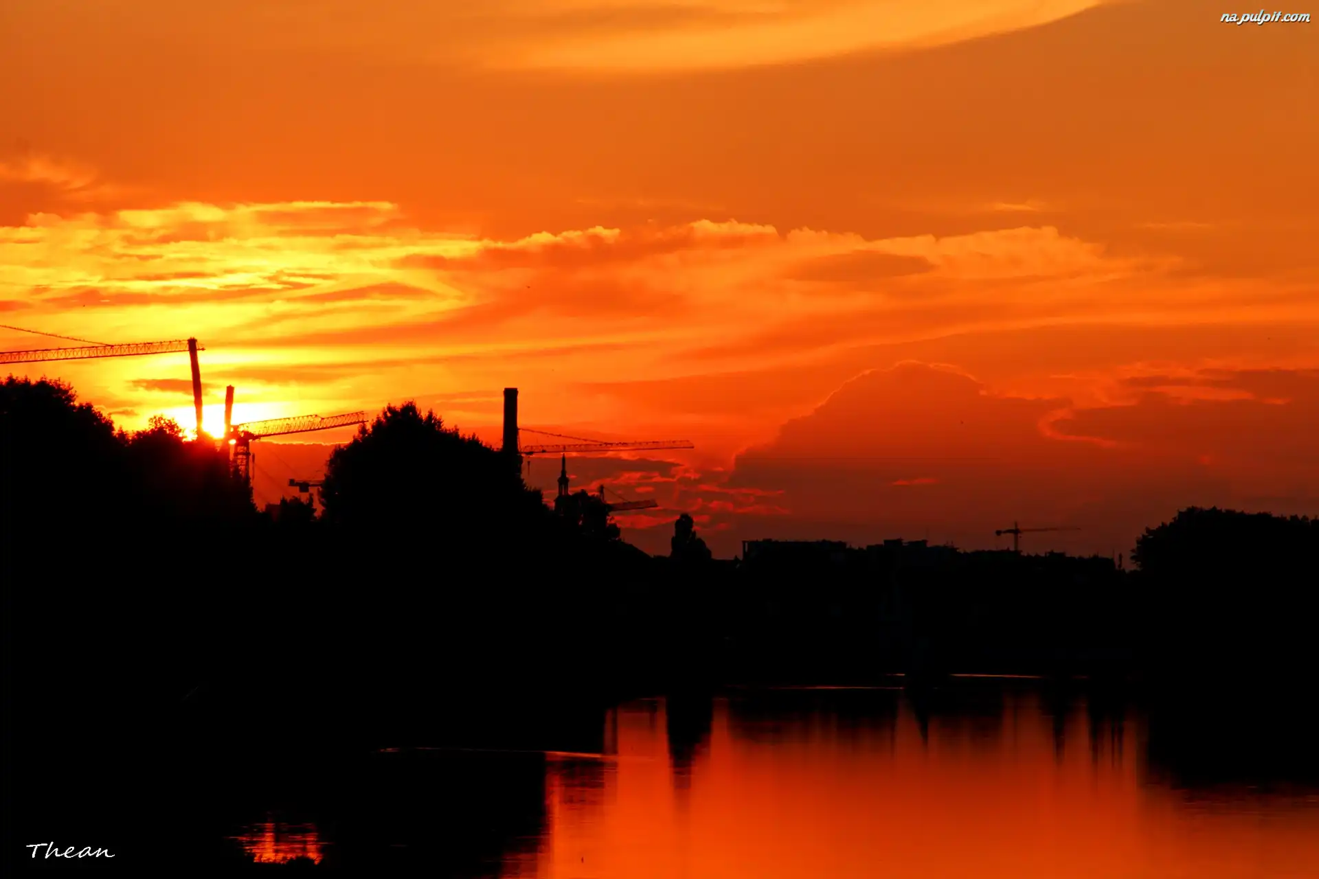 Miasto, Jezioro Malta, Słońca, Zachód, Poznań