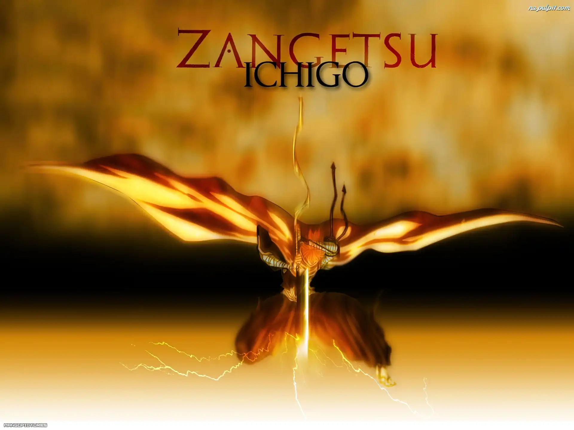 miecz, złoto, napisy, Bleach, postać Na Pulpit