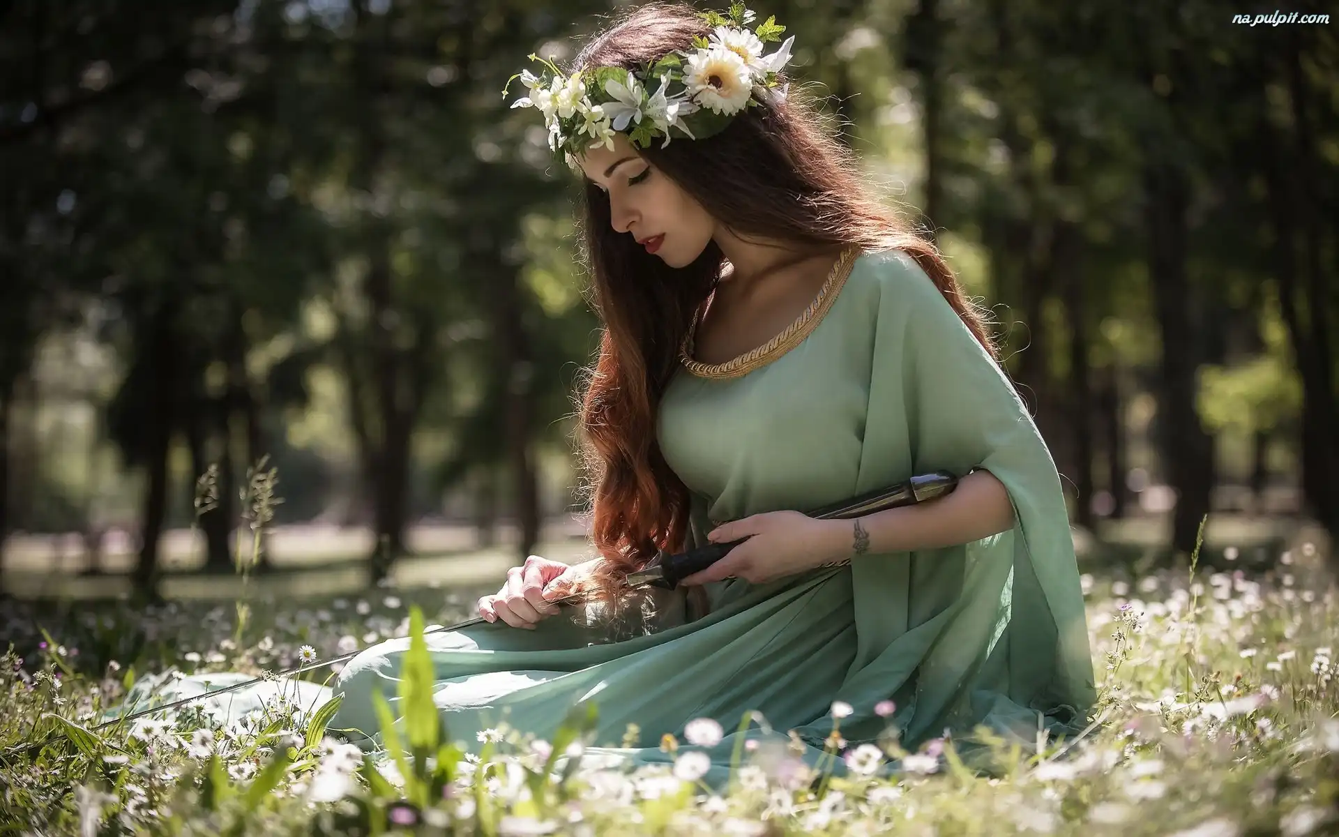 Miecz, Wianek, Kobieta, Kwiaty Na Pulpit