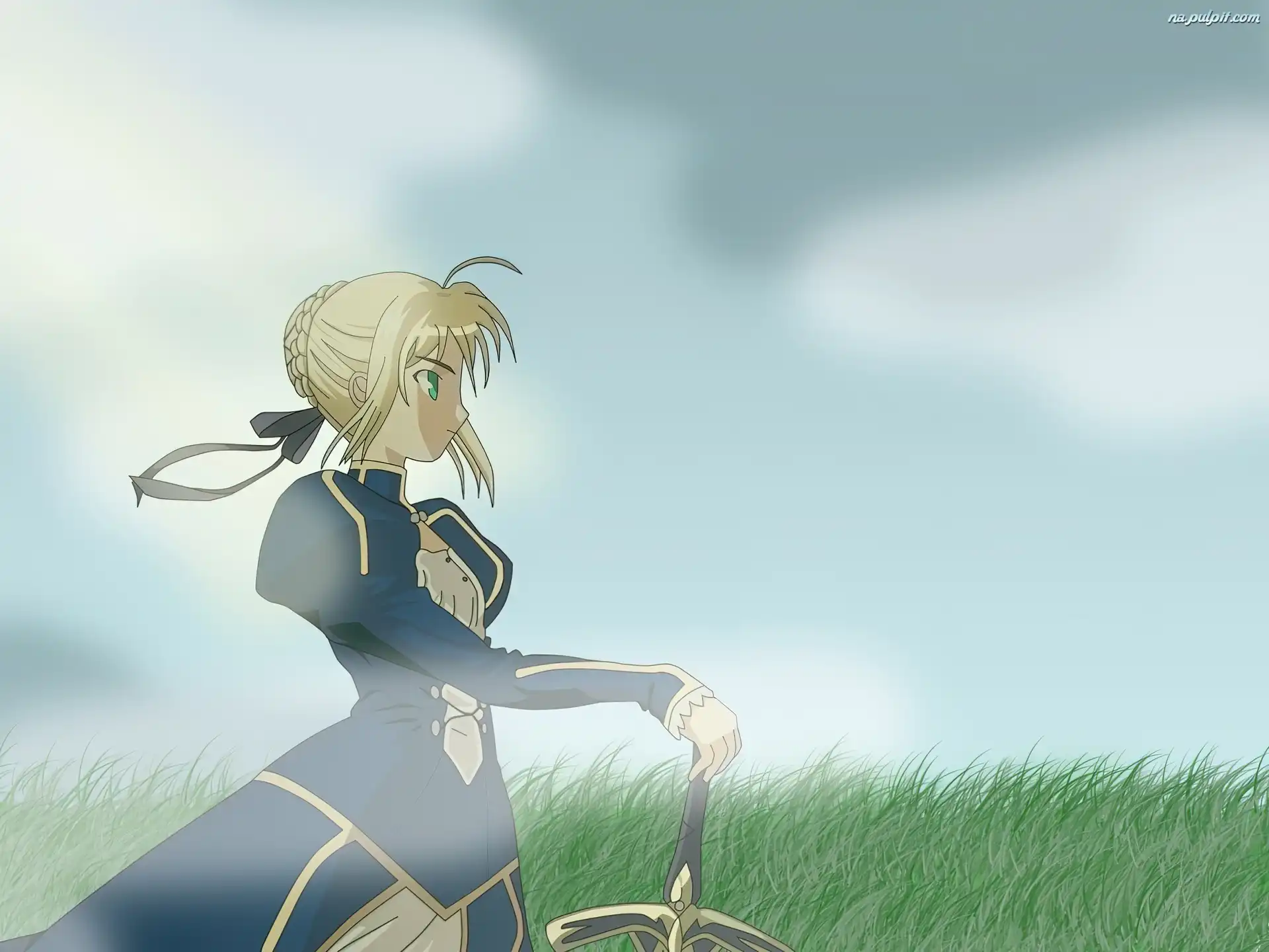 miecz, kobieta, Fate Stay Night, polana Na Pulpit