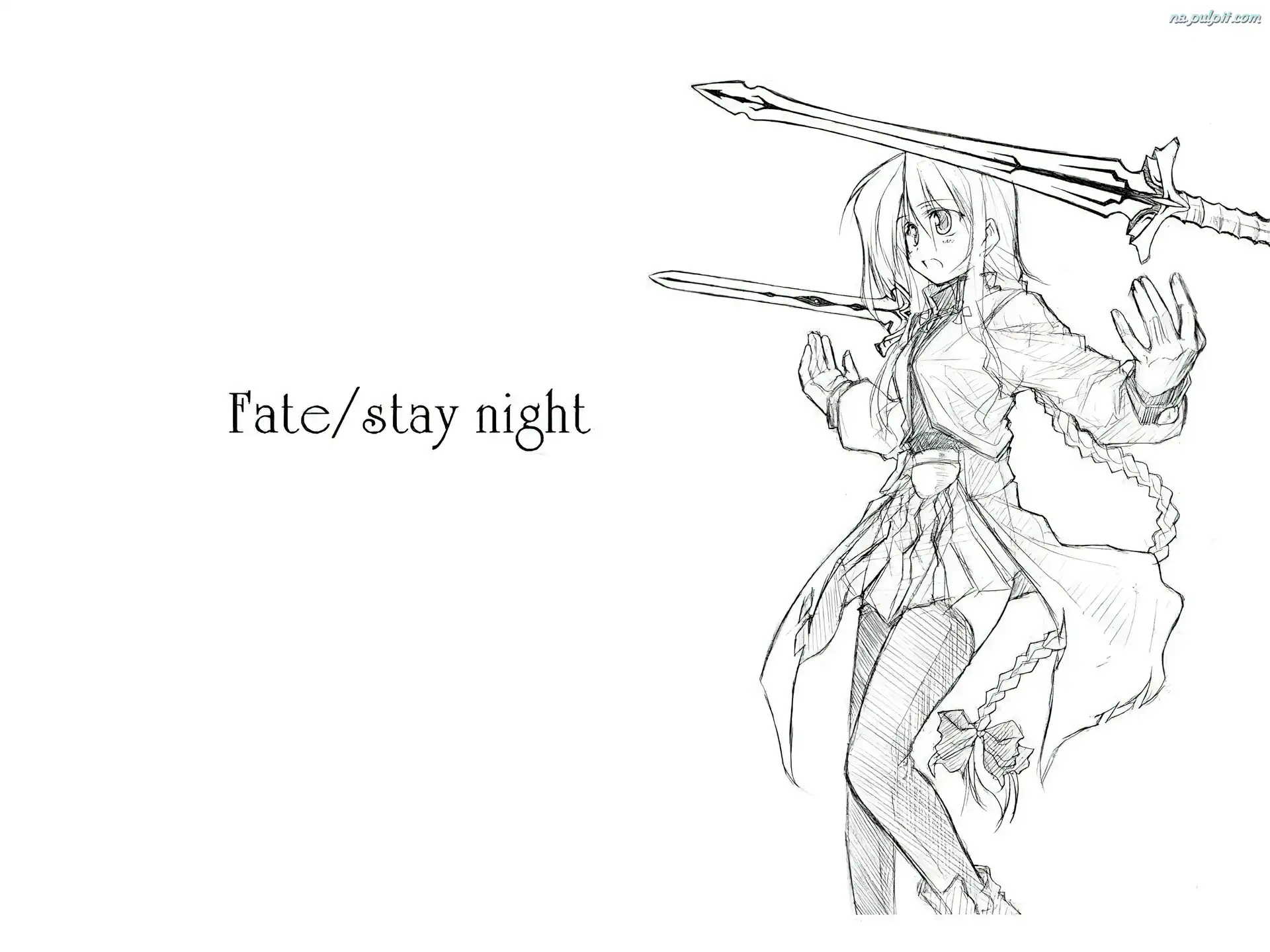 miecze, kobieta, Fate Stay Night, szkic Na Pulpit