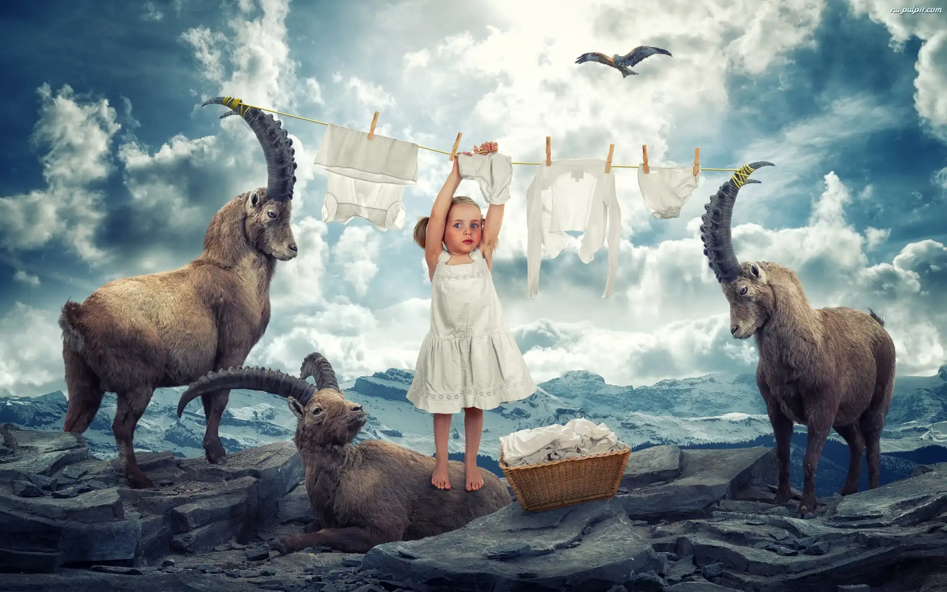 Dziewczynka, Śmieszne, Zwierzęta Na Pulpit
