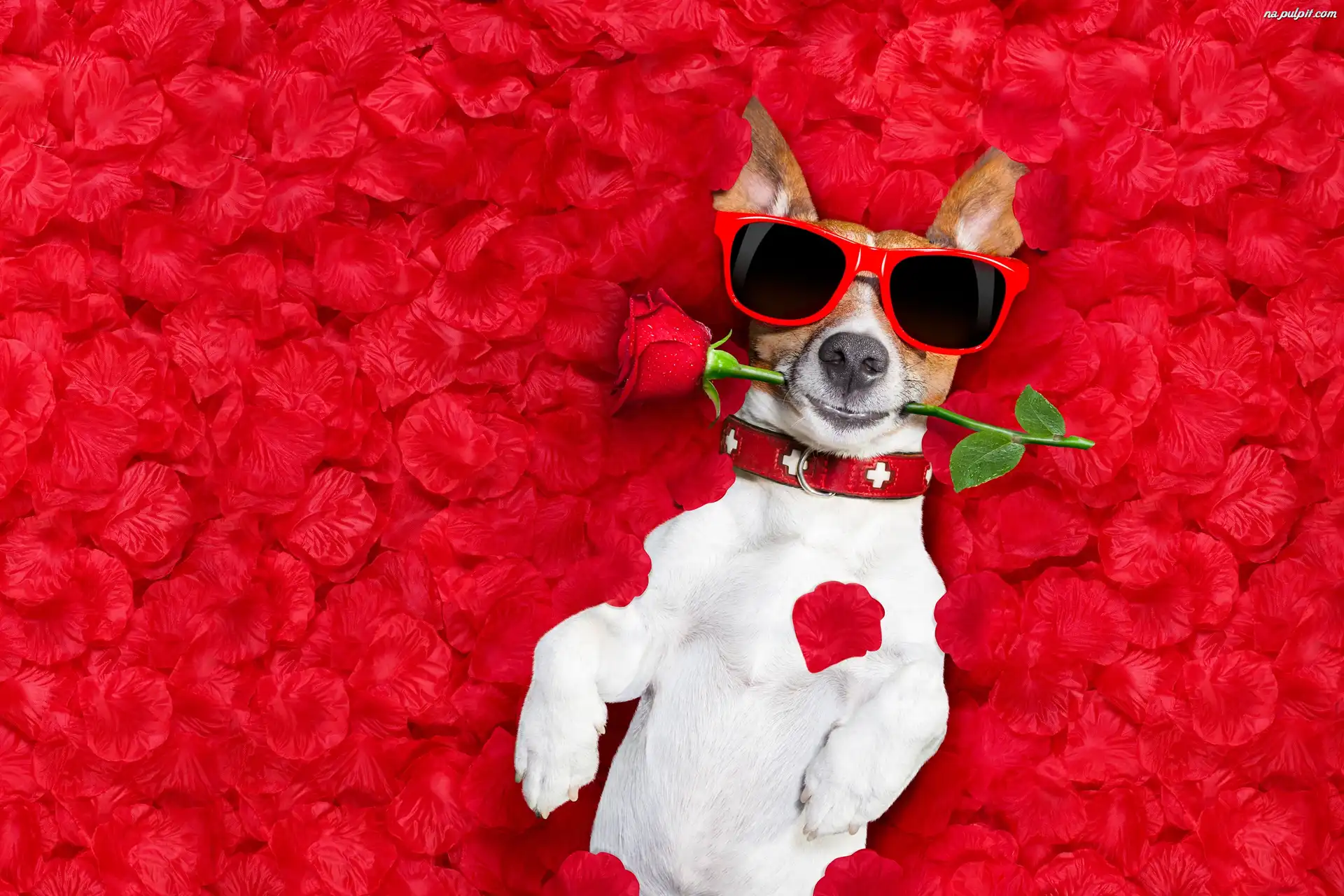 Śmieszne, Płatki, Róża, Jack Russell terrier, Okulary