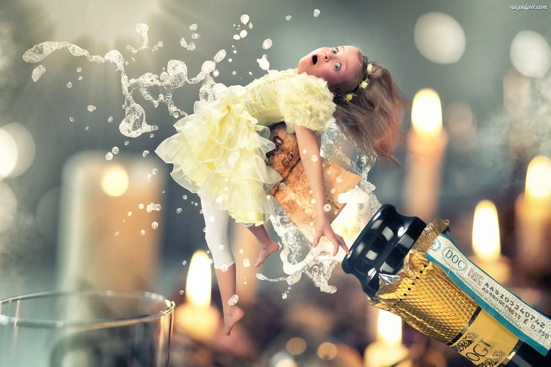 Åšmieszne, Dziewczynka, Sylwester, Butelka, Korek, Dziecko, Szampan