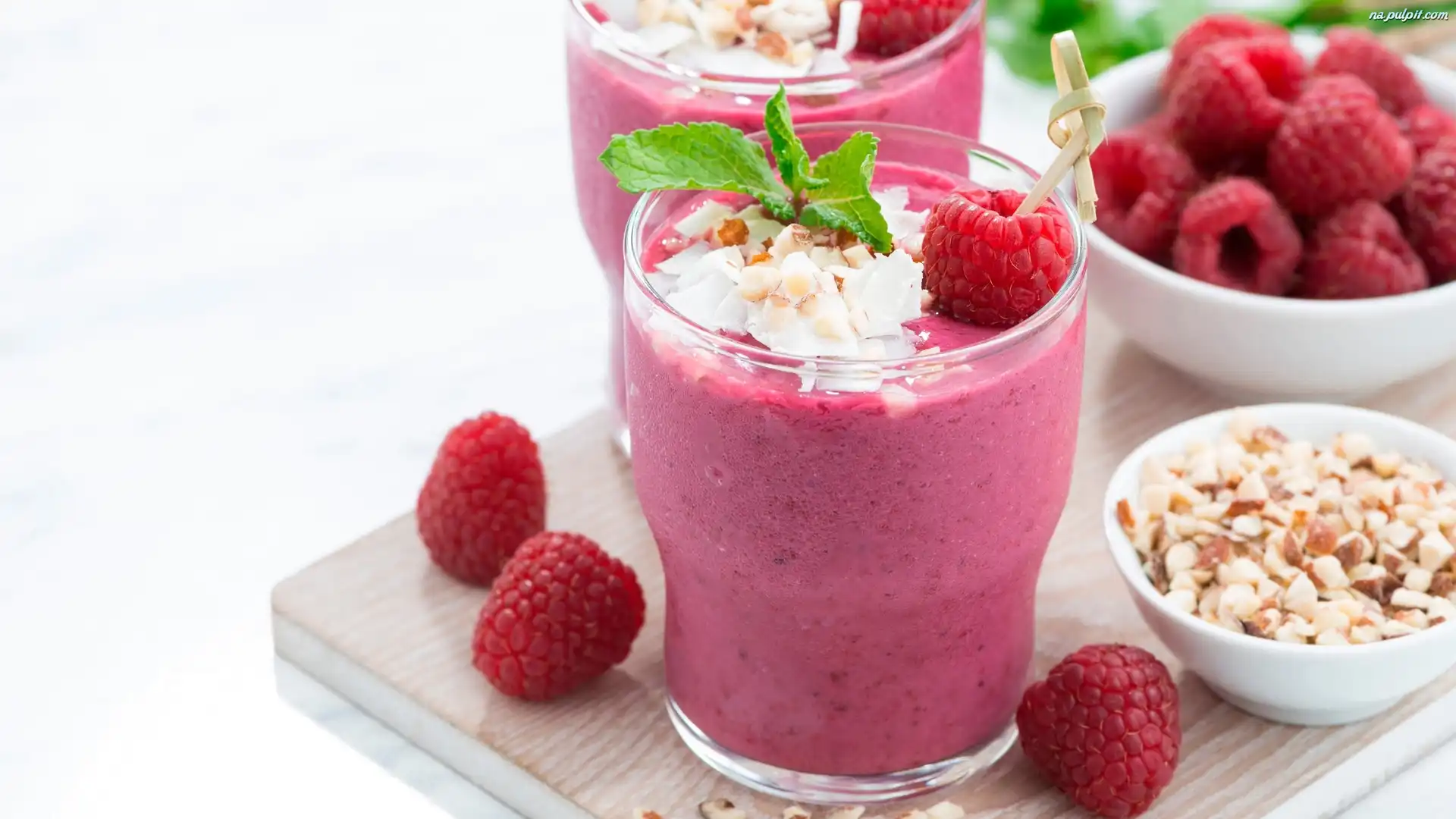 Mięta, Szklanka, Maliny, Koktajl, Orzechy Na Pulpit