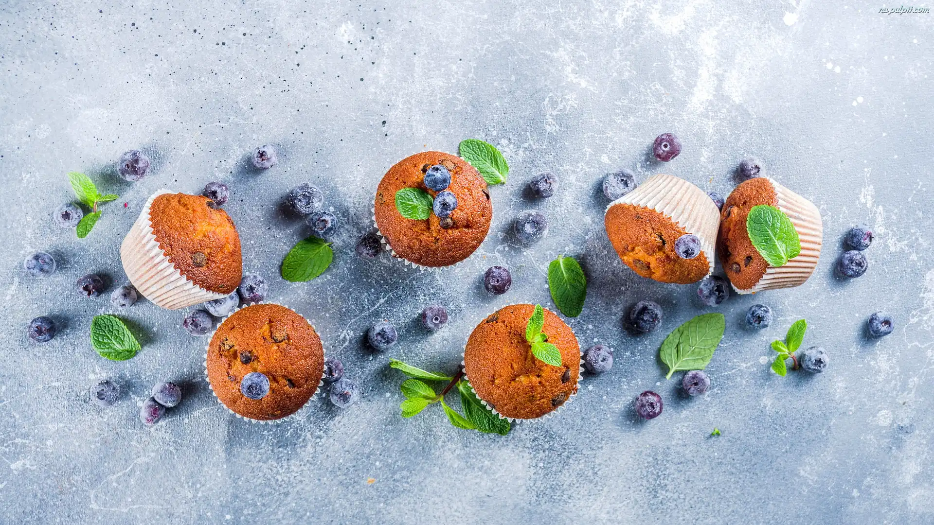 Mięty, Jagody, Muffinki, Babeczki, Listki