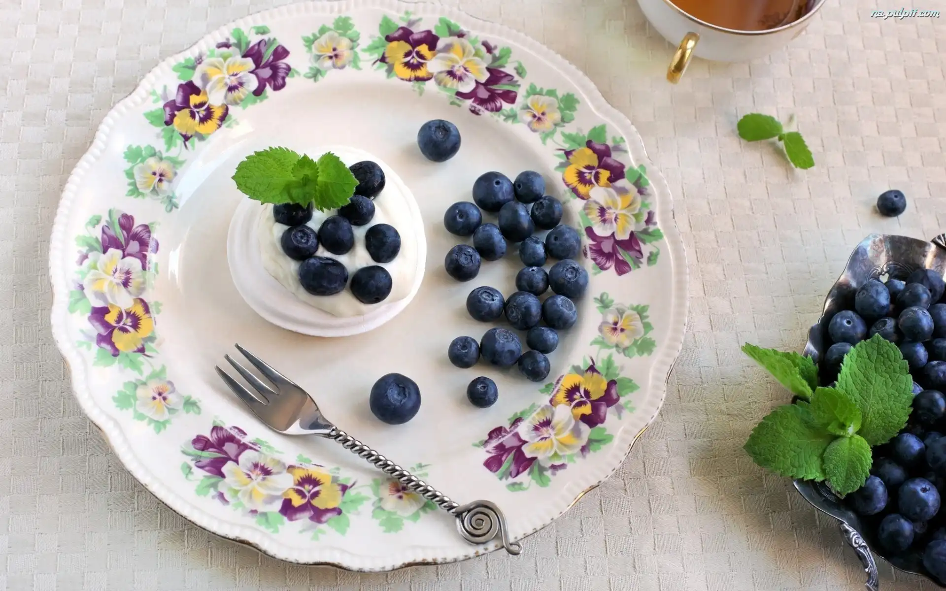 Mięty, Widelec, Talerz, Jagody, Listki