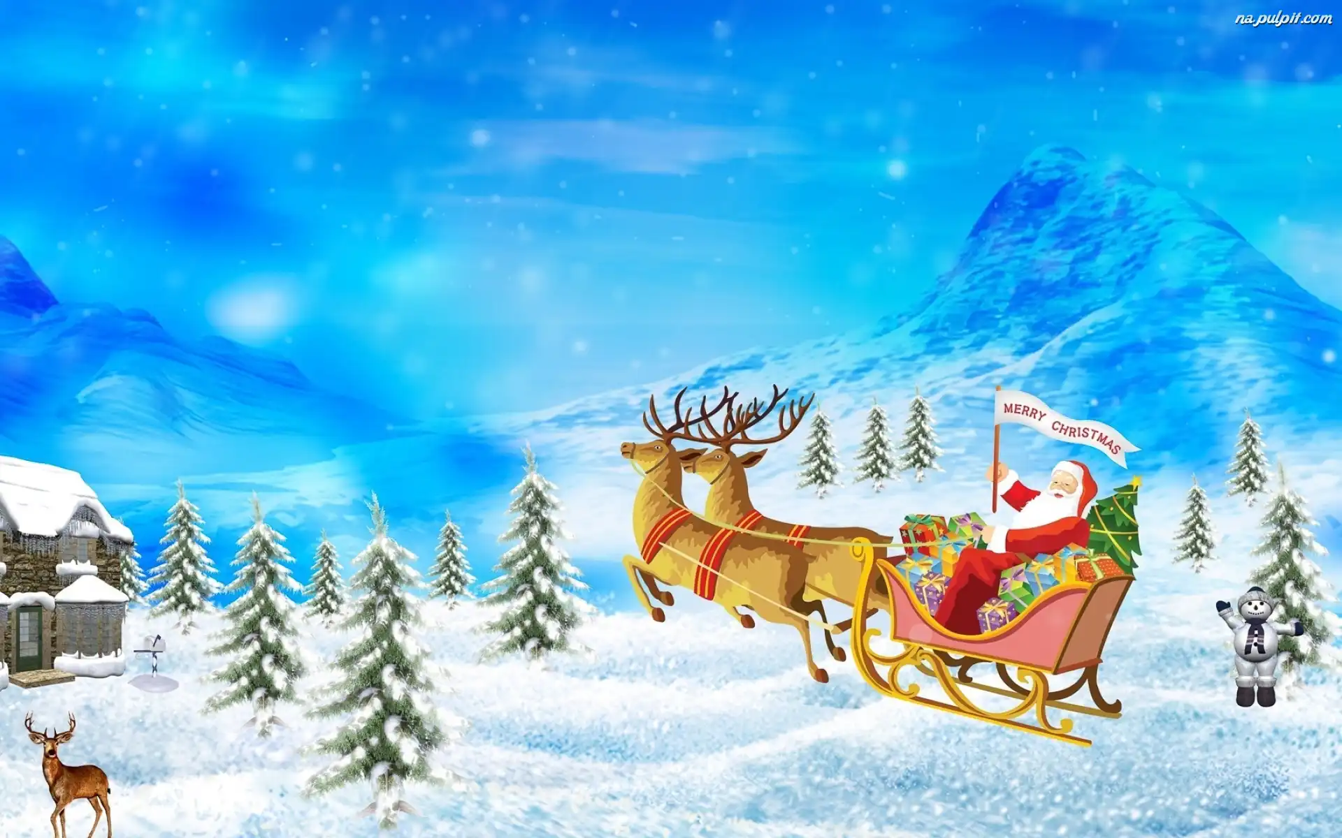 Renifery, Mikołaj, Sanie Na Pulpit