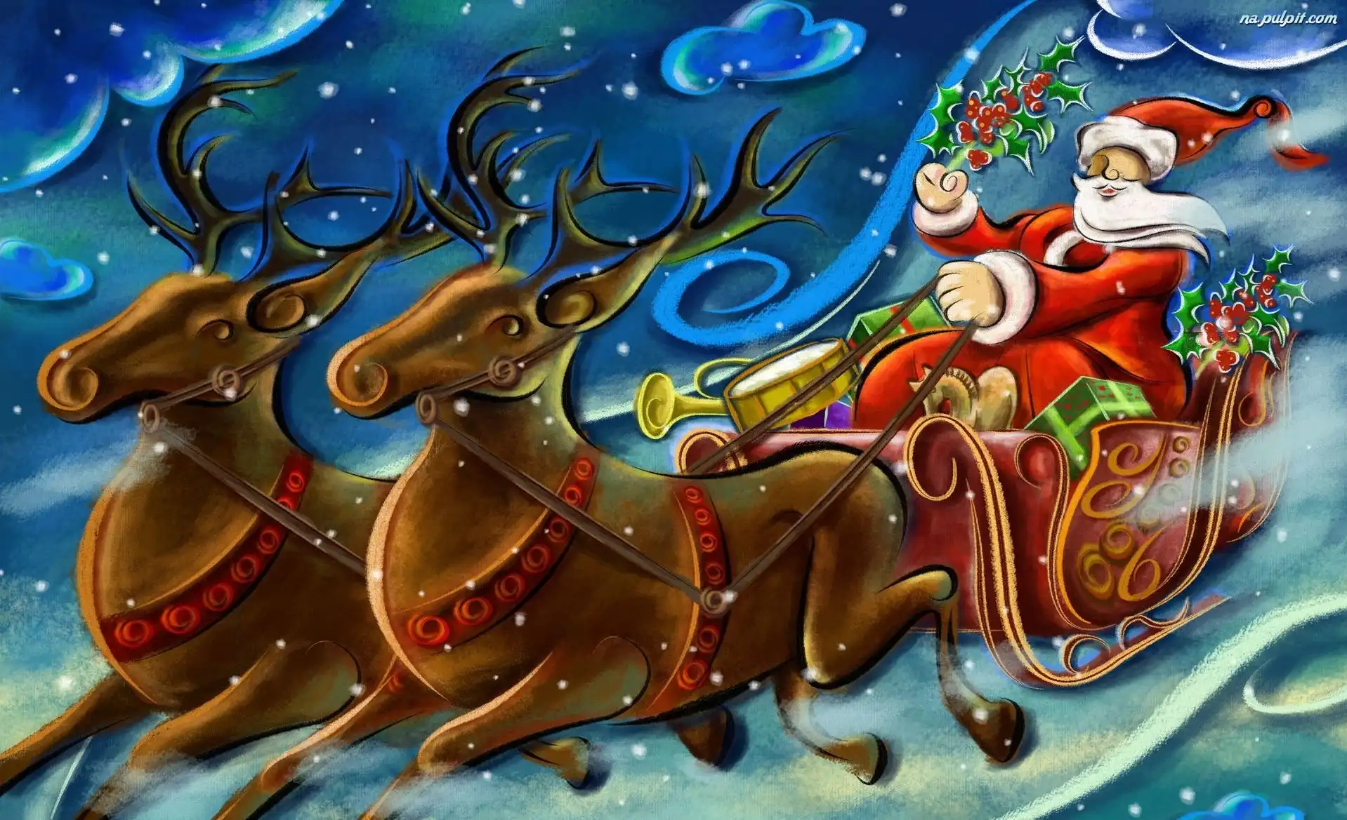 Renifery, Mikołaj, Sanie Na Pulpit