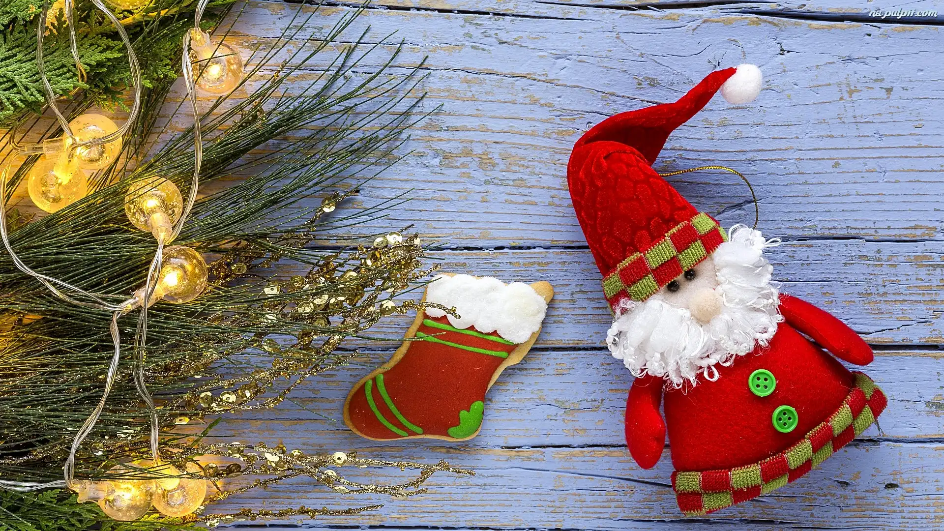 Mikołaj, Lampki, Świąteczne, Pierniczek, Zawieszka, Gałązki