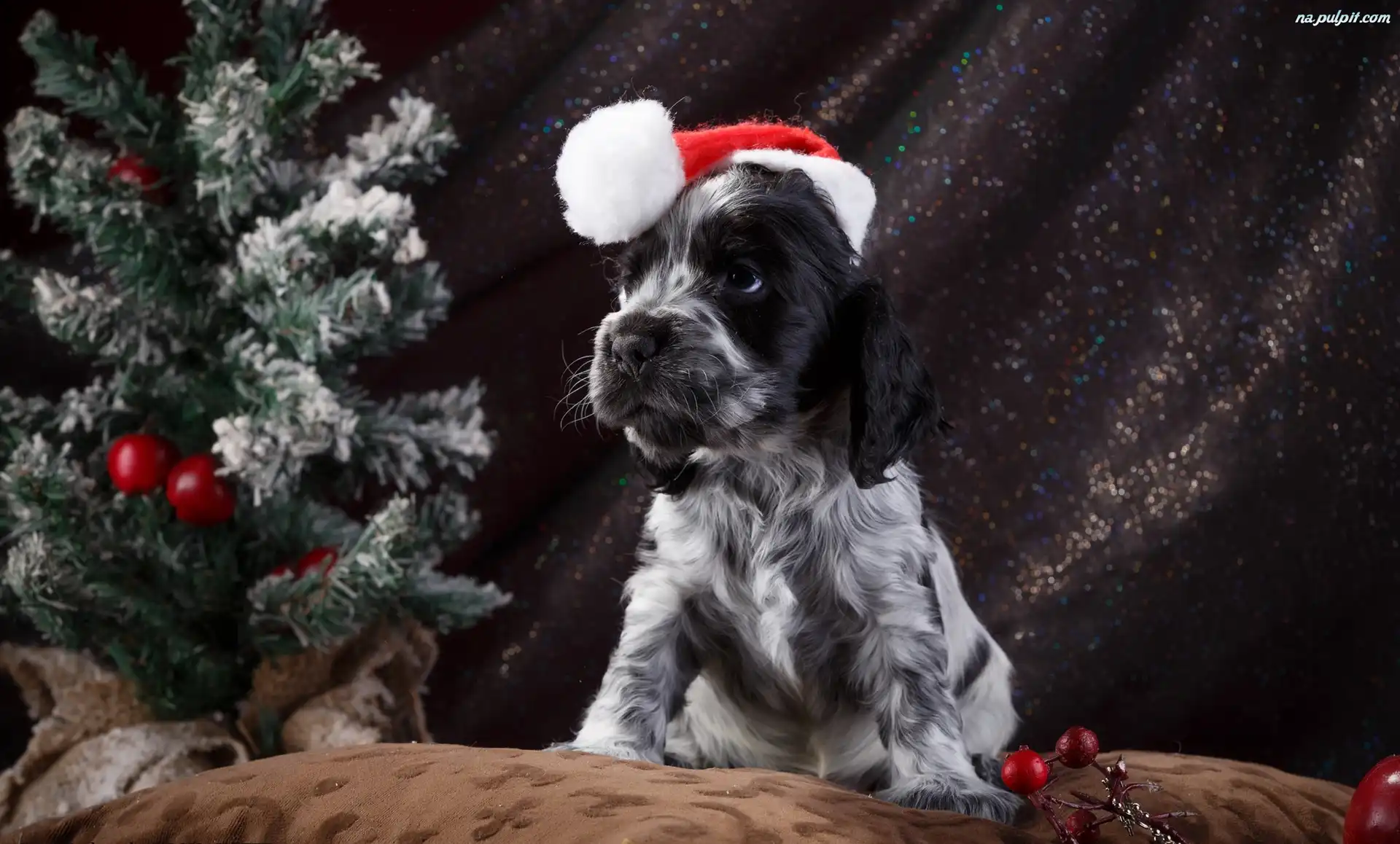 Szczeniak, Mikołaja, Choinka, Springer spaniel angielski, Pies, Czapka Na Pulpit