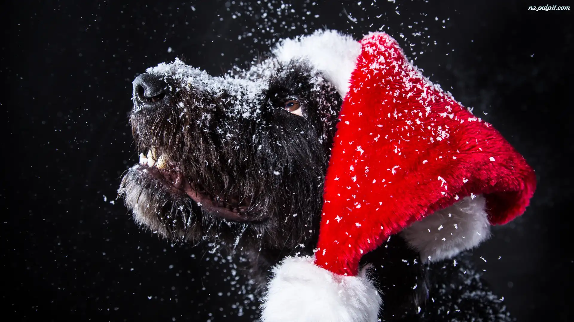 Mikołaja, Pies, Czarny, Śnieg, Czapka Na Pulpit