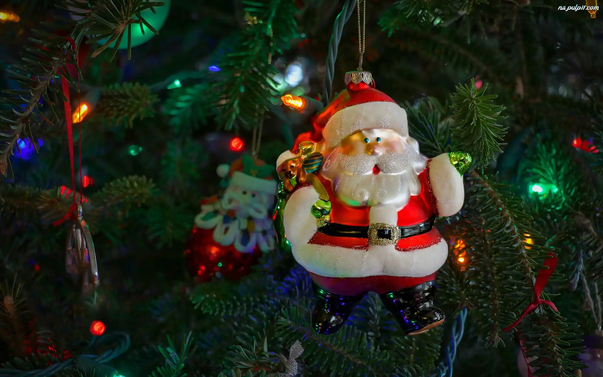 Lampki, Mikołajki, Świerka, Mikołaj, Bombka, Boże Narodzenie, Gałązki Na Pulpit