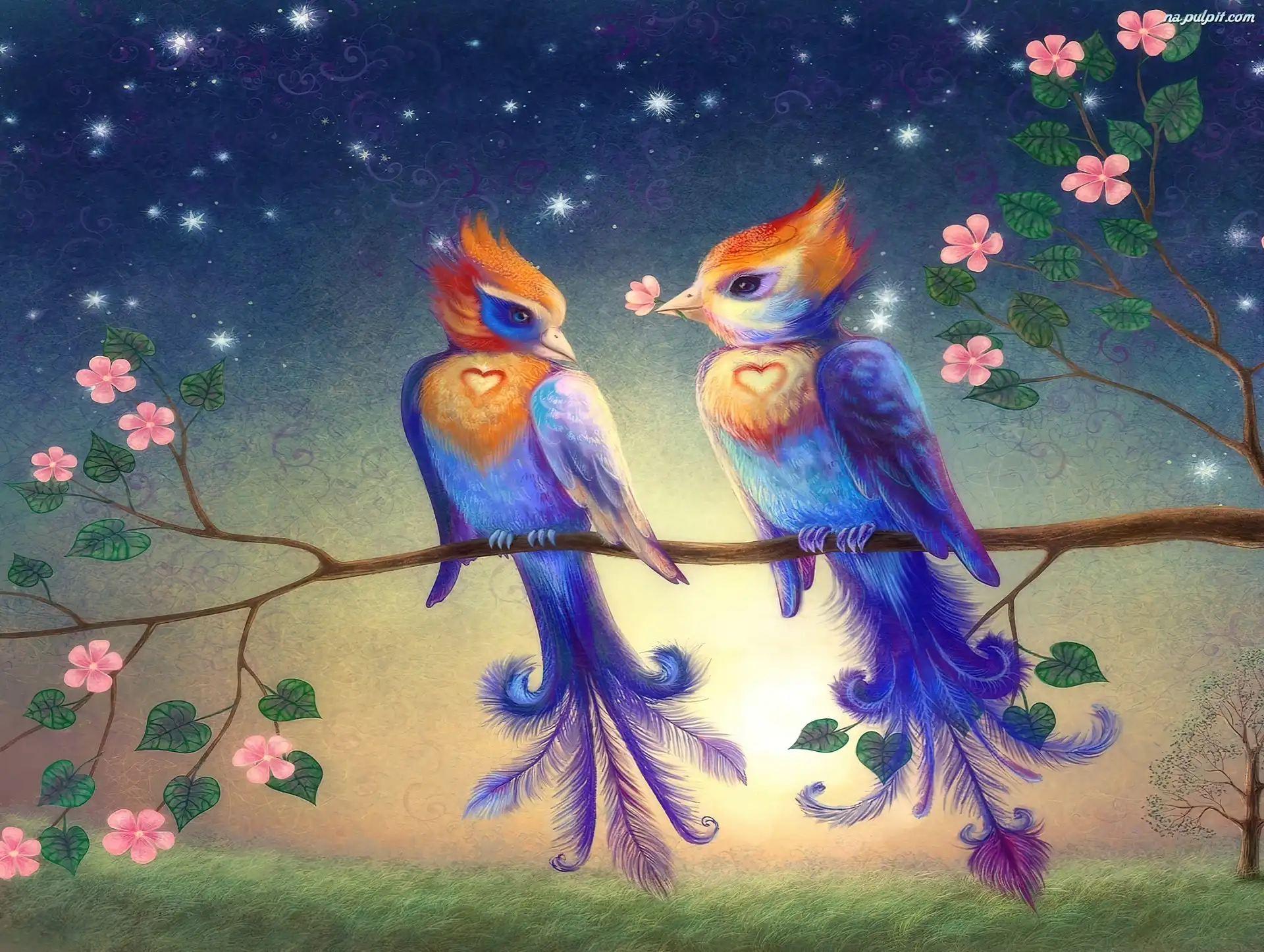 Miłość, Kolorowe, Dwa, Ptaszki Na Pulpit