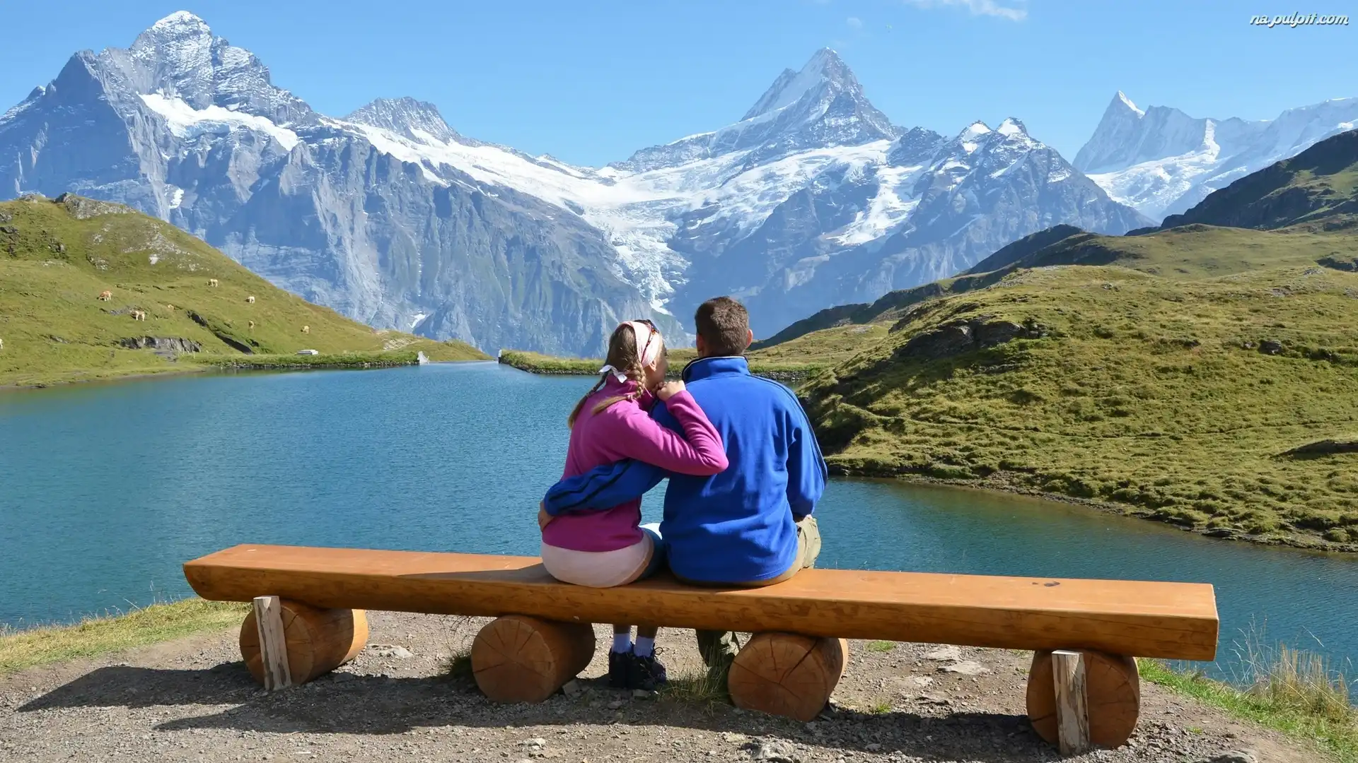 Miłość, Ławka, Trawa, Góry, Para, Jezioro Na Pulpit