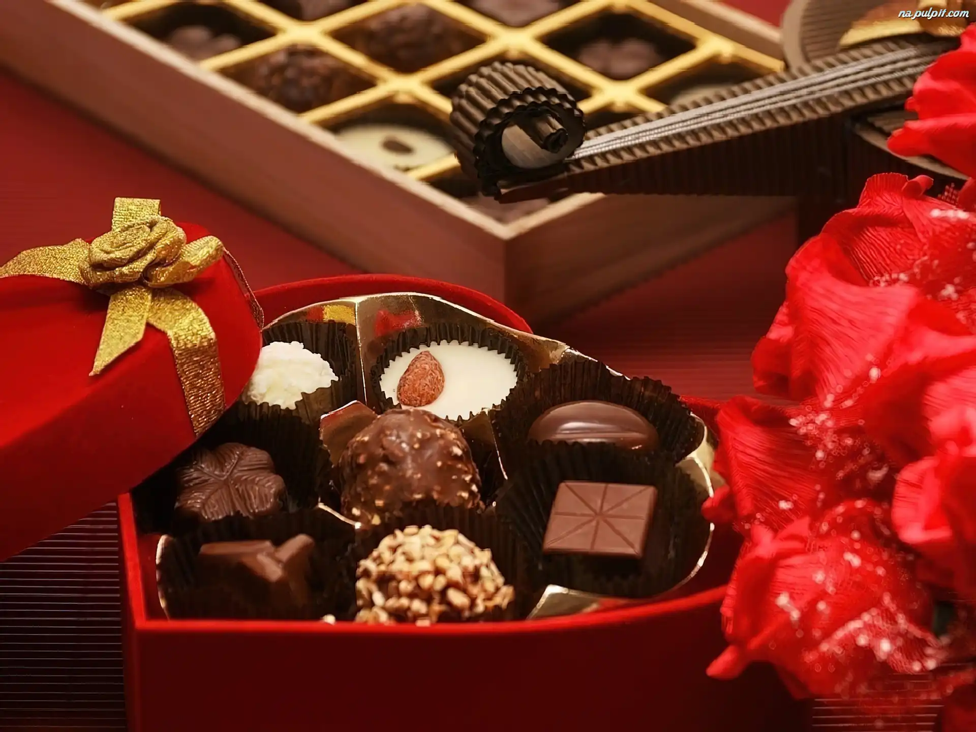 Miłość, Czerwone, Bombonierka, Pralinki, Serduszko