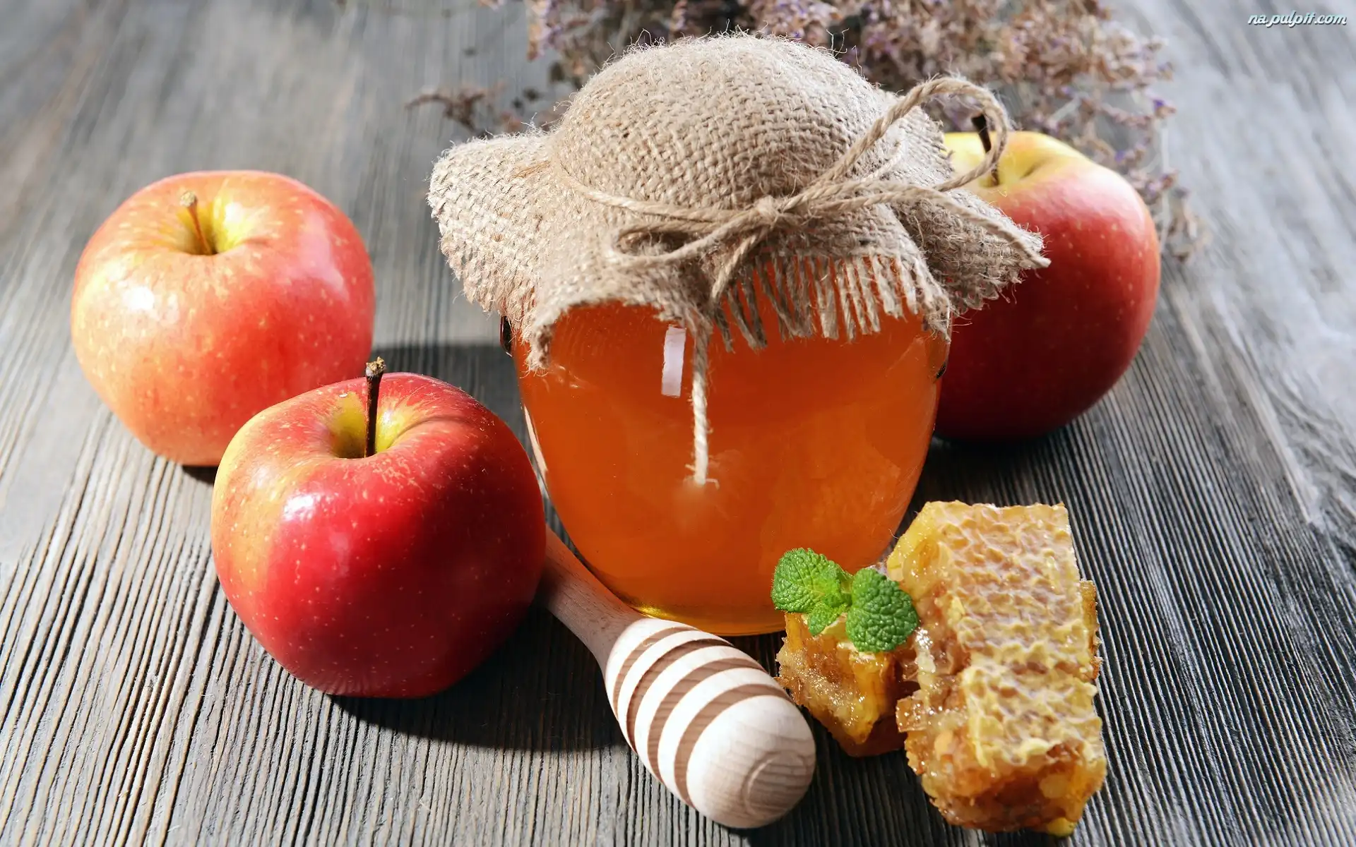 Miód, Nabierak, Deski, Owoce, Słoik, Jabłka