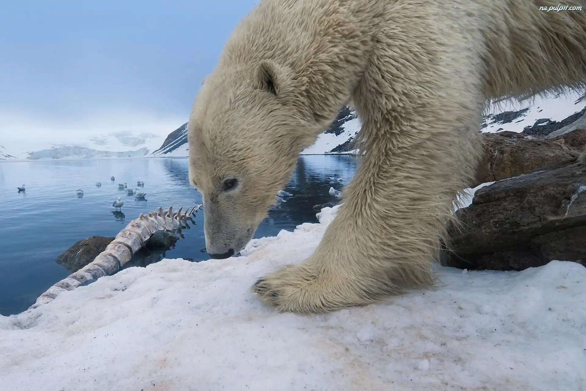 MiÅ›, Åšnieg, Niebo, Jezioro Na Pulpit