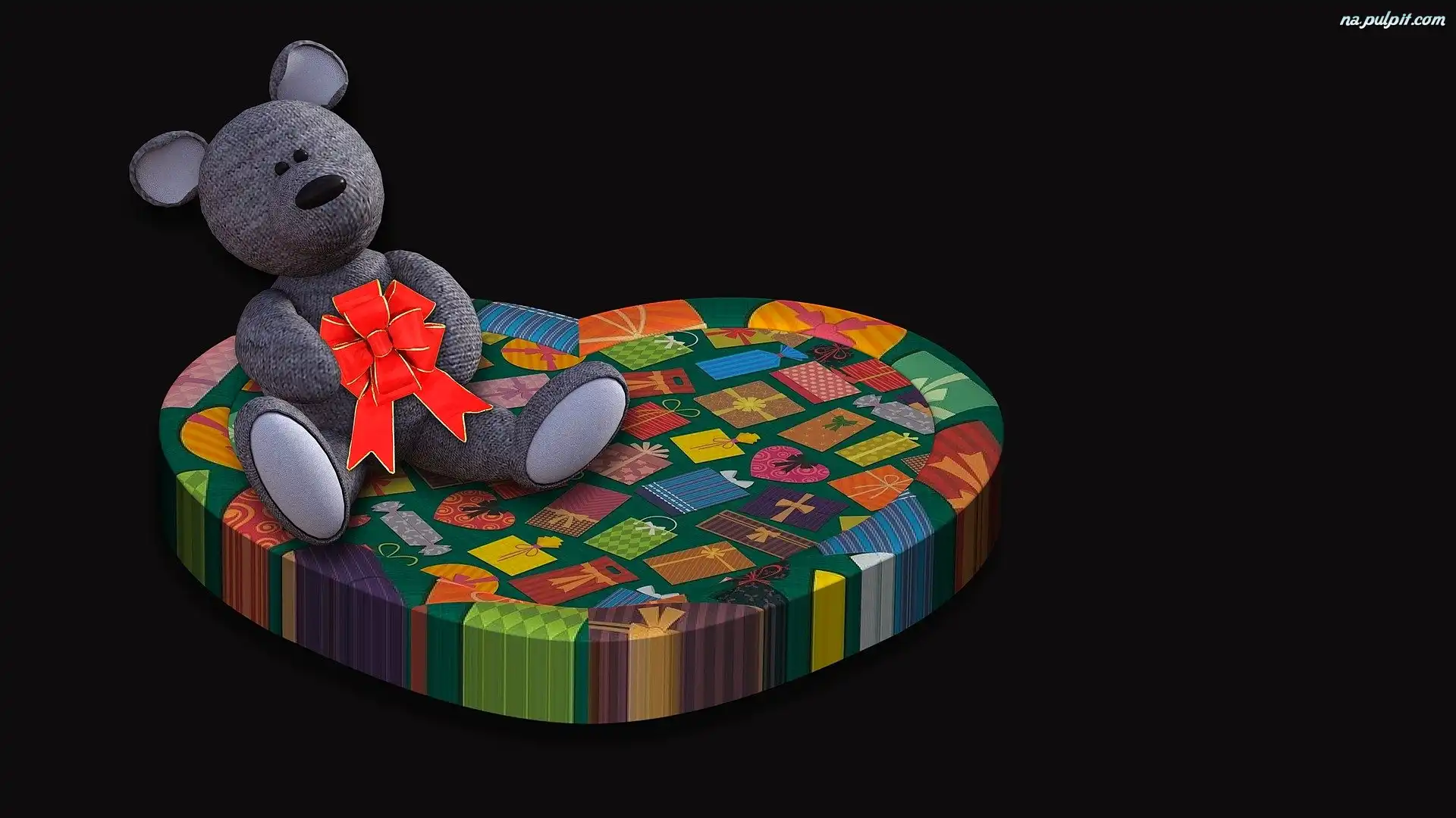Miś, Ciemne, Tło, Wstążka, Pluszowy, Serce Na Pulpit