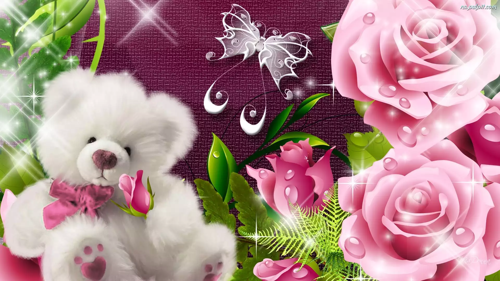 Miś, Motyl, Róże, Pluszowy Na Pulpit