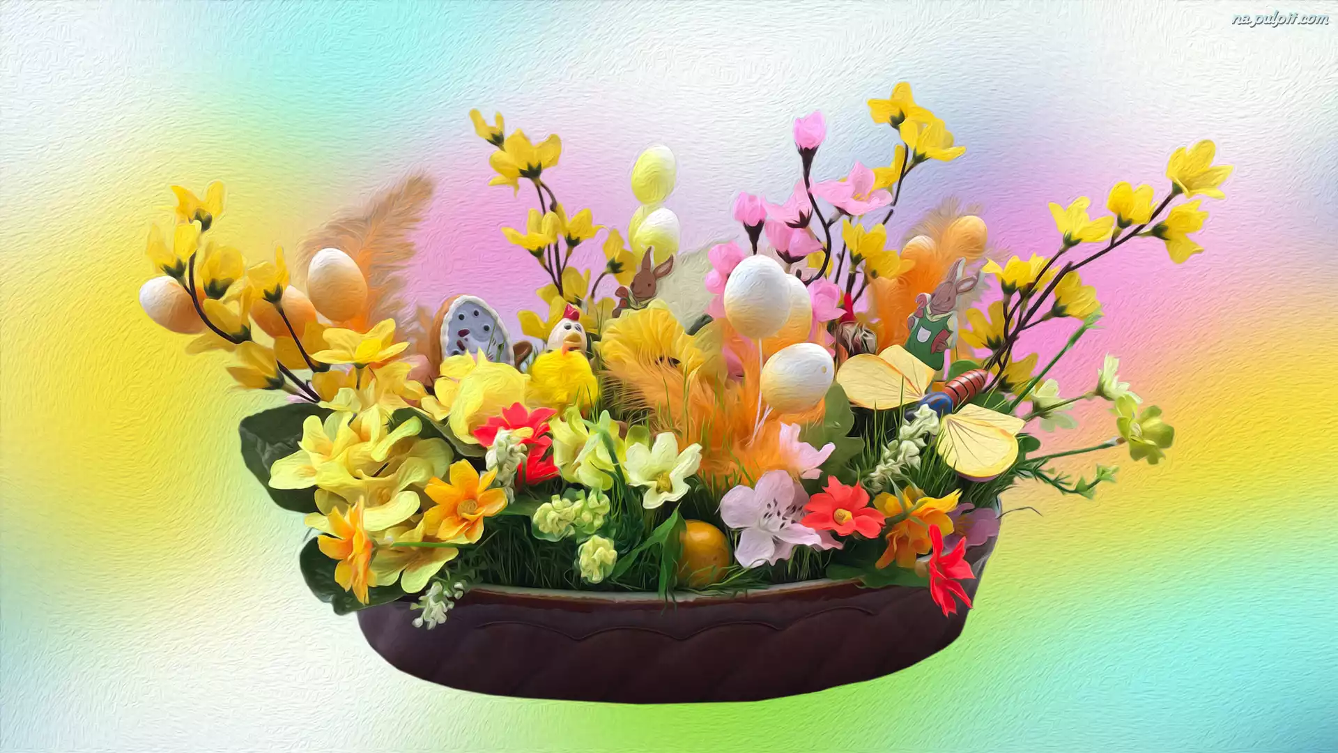 Misa, Kwiaty, Wielkanoc, Pisanki