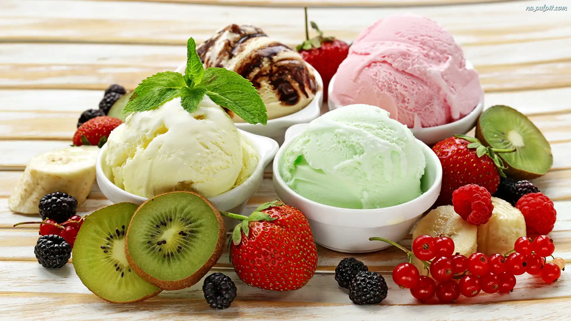 Porzeczka, Miseczki, Jeżyny, Kiwi, Owoce, Lody, Truskawki Na Pulpit