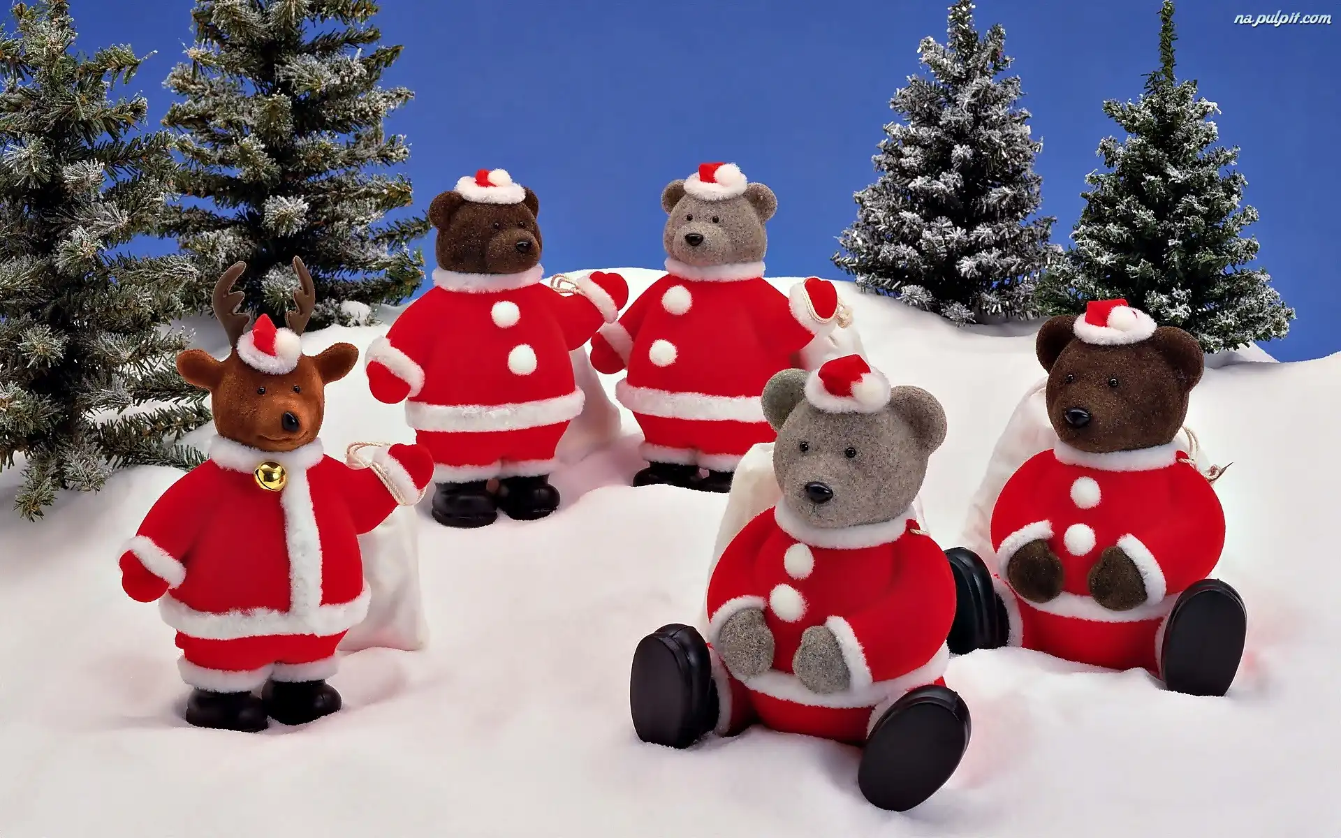 Śnieg, Mikołaje, Misie, Choinki Na Pulpit
