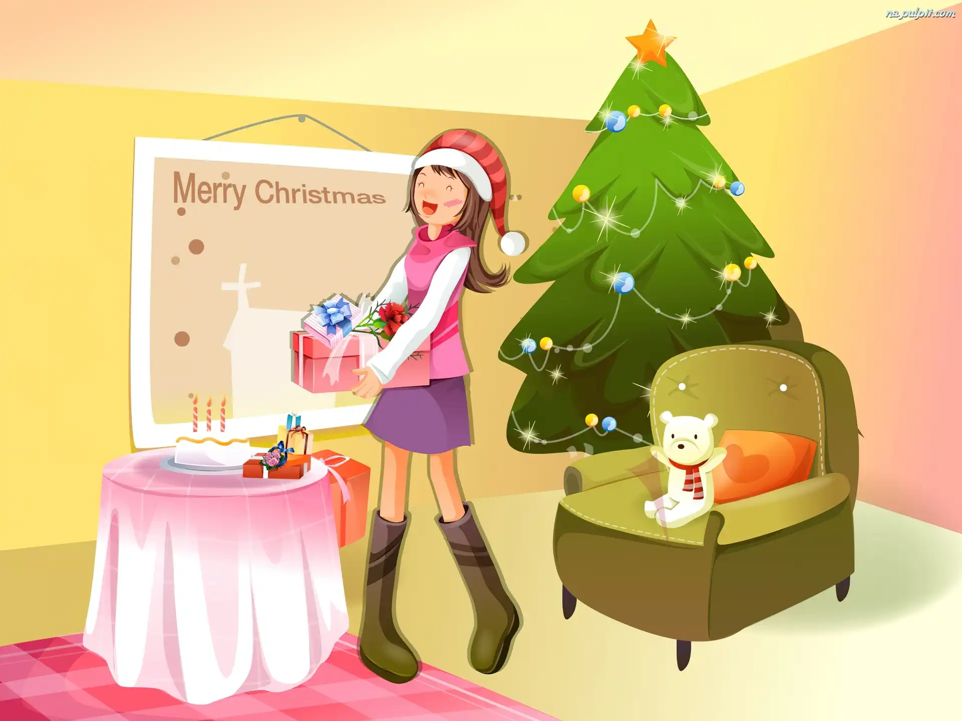 Misio, Choinka, Dziewczyna, Prezenty Na Pulpit